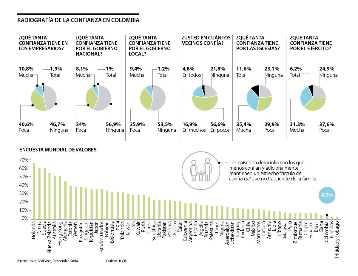 Los colombianos solo confían en altas proporciones en su familia y la mayoría cree poco o nada, en las instituciones sociales del país, tales como el Gobierno, la Iglesia o el Ejército.
