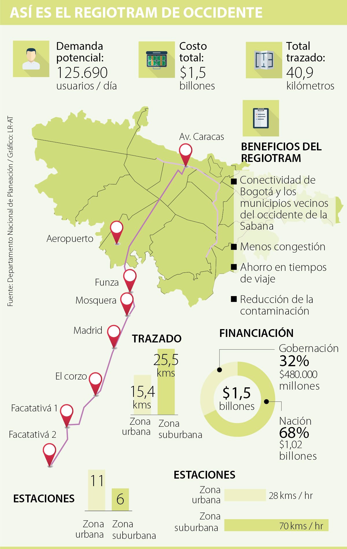 Hay que recordar que el proyecto tiene 39,6 kilómetros de longitud por Facatativá, Mosquera, Funza, entre otras y entra a Bogotá por Catam, llegando por la Calle 26 en el corredor férreo, eso permitirá movilizar 44 millones al año que entre otras cosas harán transbordo con el Metro de Bogotá. De hecho, se tiene contabilizado que en esa primera fase serán 130.000 personas movilizadas por día.
