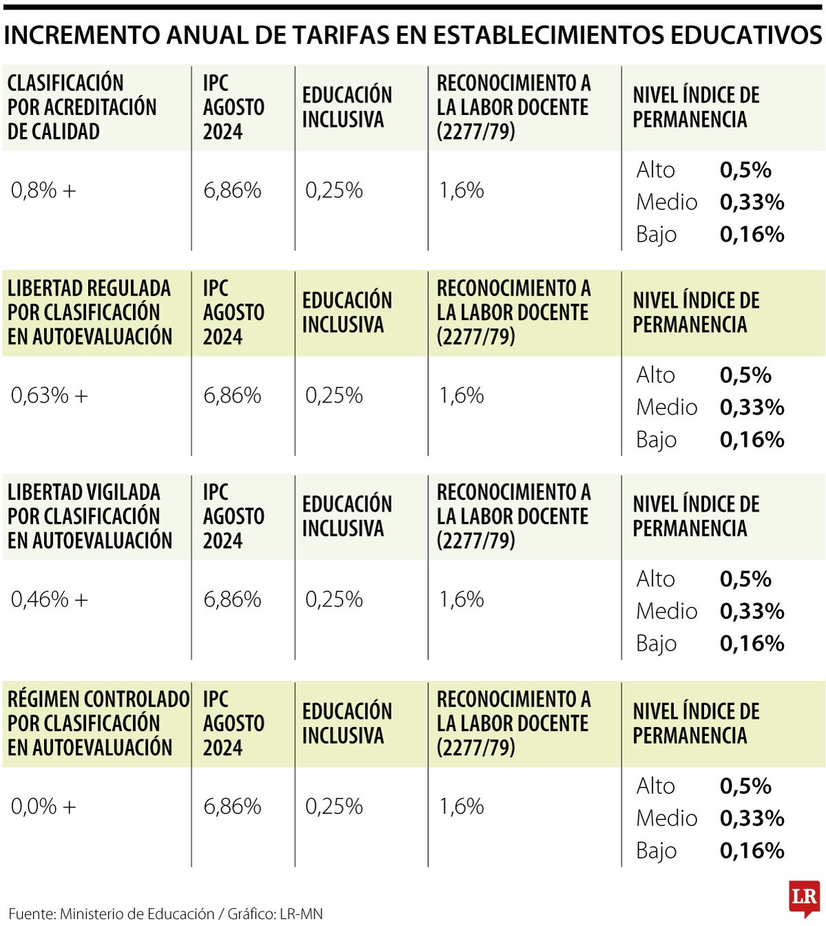 En cuanto al aumento en el régimen de libertad regulada por certificación, deberán sumar la clasificación por acreditación de calidad, el IPC, educación inclusiva, pago salarial a docentes y el nivel de permanencia.