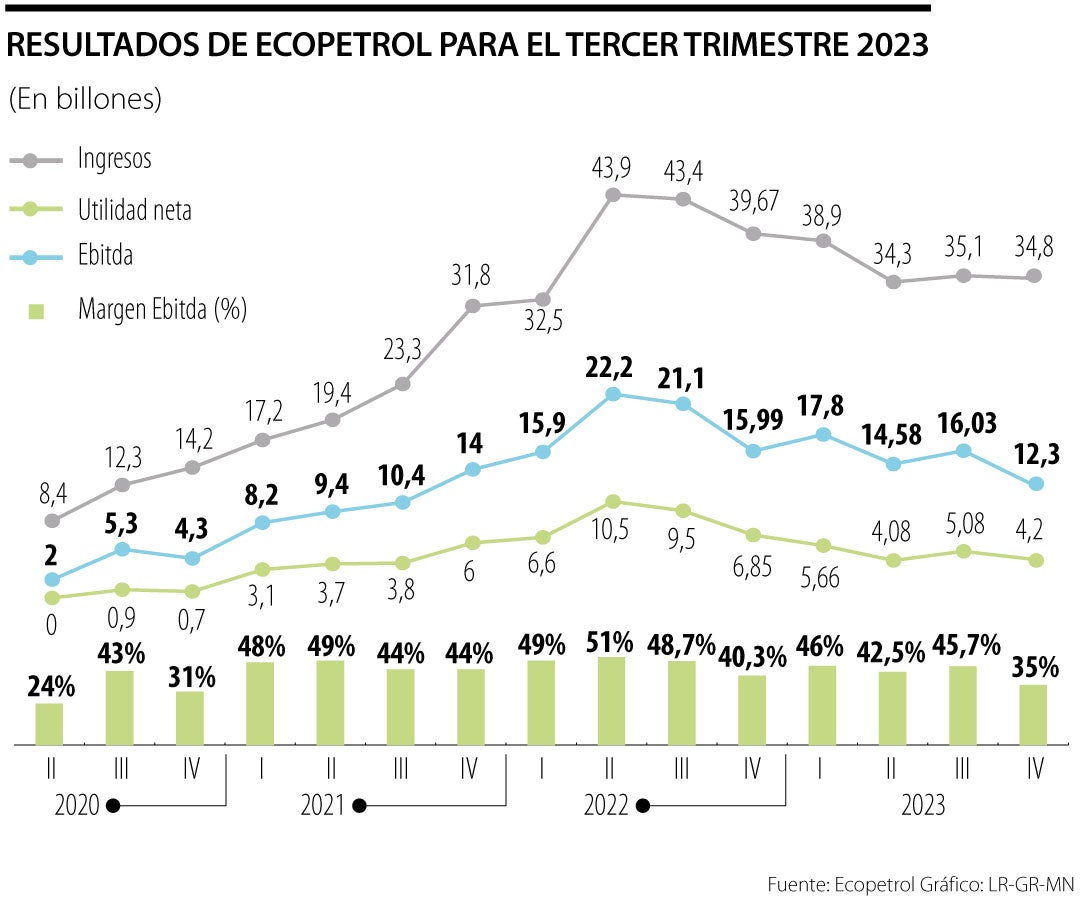Las peores noticias para la petrolera estuvieron por el lado de las utilidades. En 2023 fue la primera vez que cayeron en tres años, luego del retroceso de 2020 por cuenta de la pandemia.