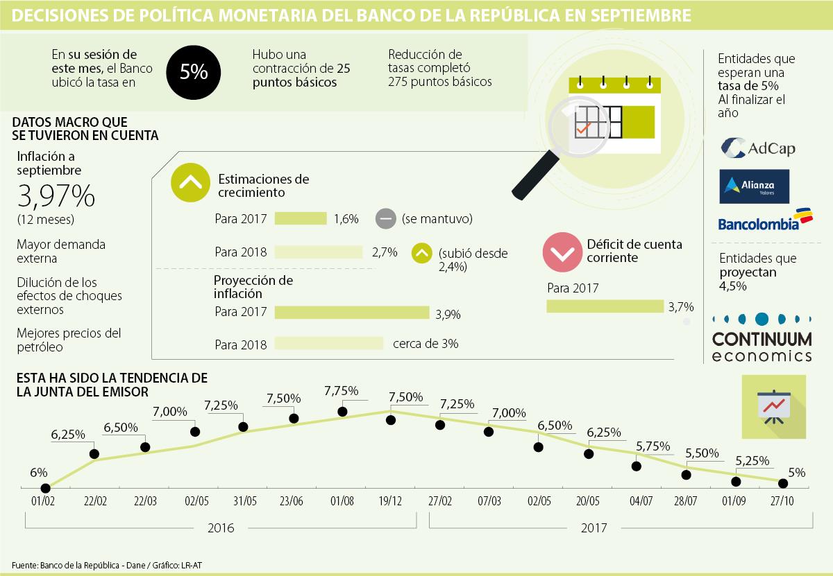 Sin embargo, hubo “buenas noticias”, como calificó el ministro Mauricio Cárdenas. Una de ellas, fue el ajuste dentro del rango meta de la inflación, por parte de los técnicos del banco, quienes ya cuentan con una proyección de IPC cerrando 2017 en 3,9% y de incluso 3% para el próximo año.