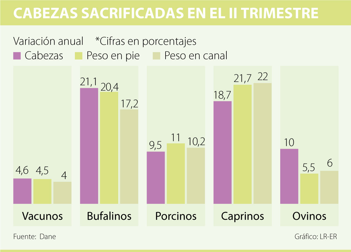 De acuerdo con la Encuesta de Sacrificio de Ganado del Dane, en el segundo trimestre de este año, las cabezas sacrificadas de las cinco especies que hacen parte de este informe aumentaron respecto al mismo trimestre de 2017.