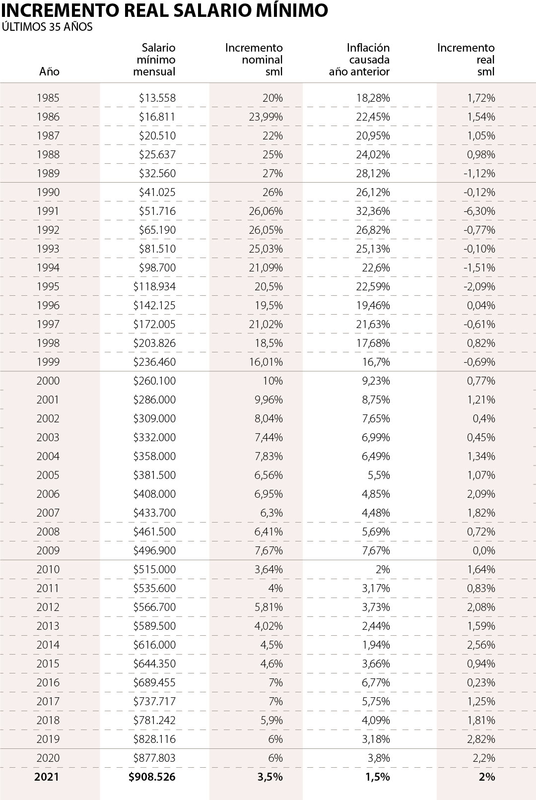 El analista añadió que este incremento es uno de los aumentos más importantes en los últimos diez años en términos reales. No obstante, Jaramillo afirmó que dada la coyuntura no es la forma más prudente de establecer el salario para 2021.