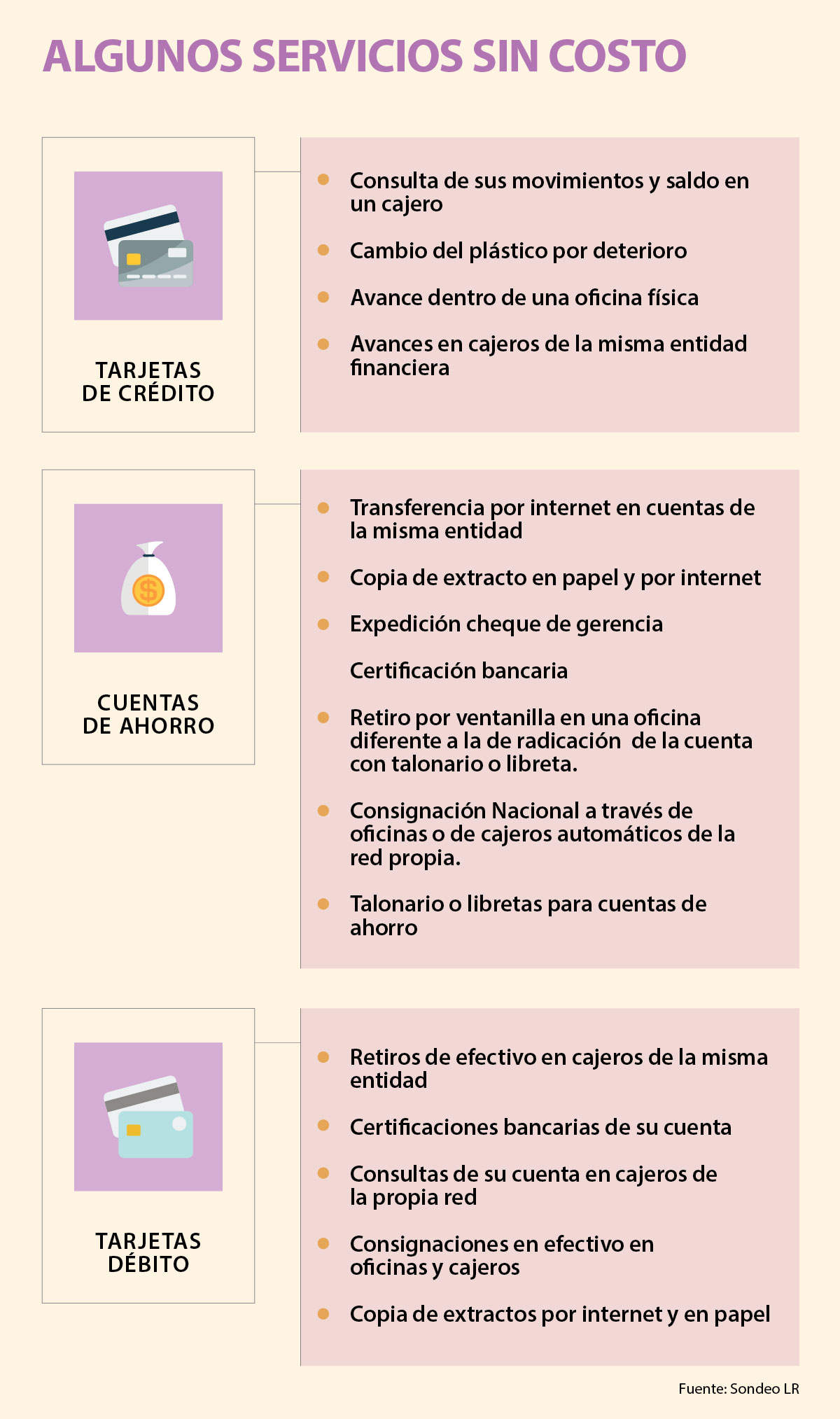 Por ejemplo, si usted es usuario común de cuentas de ahorro debe saber que no le podrán cobrar por servicios como: