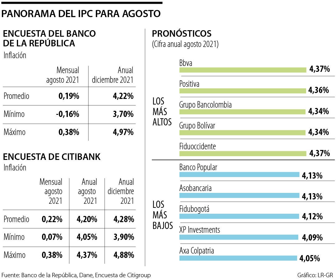 En este mismo concepto coincide Gustavo Acero, economista del Banco de Bogotá, quien señaló que la sorpresa alcista en el IPC impactará en el mismo sentido, tanto las expectativas del mercado como del consenso, por lo que seguirá por encima de 4%.