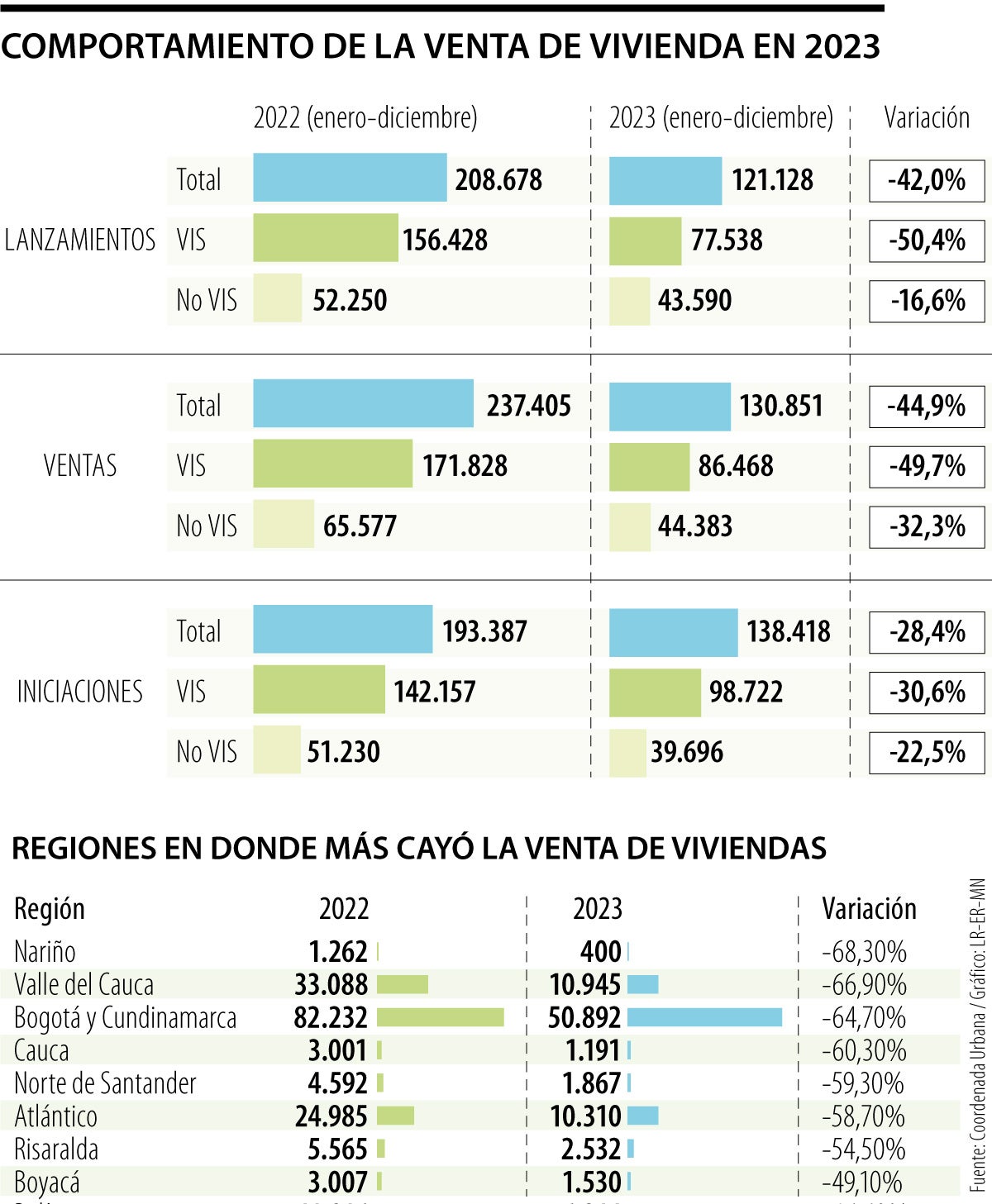 El gremio del sector aseguró que el año pasado se vendieron 106.554viviendas menos que en todo 2022. Esto quiere decir que los hogares invirtieron $20 billones menos en compra de vivienda en comparación con 2022.
