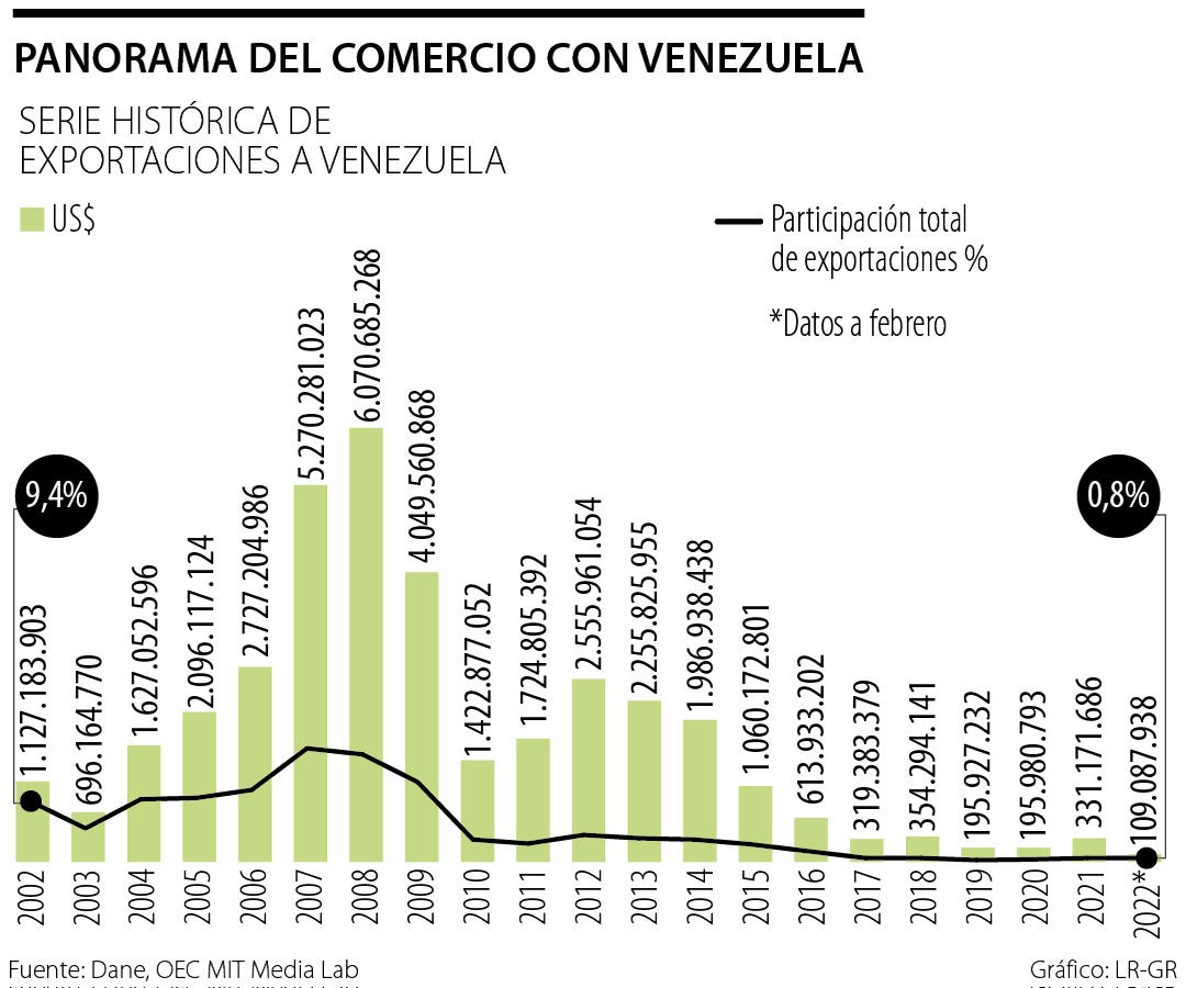De enero a marzo, las exportaciones desde Colombia se ubicaron en US$109 millones, con un crecimiento de 113% si se compara con el año anterior. En cuanto a las importaciones que llegaron de Venezuela, en el primer trimestre hubo US$14,6 millones, lo cual significó un incremento de 25%.