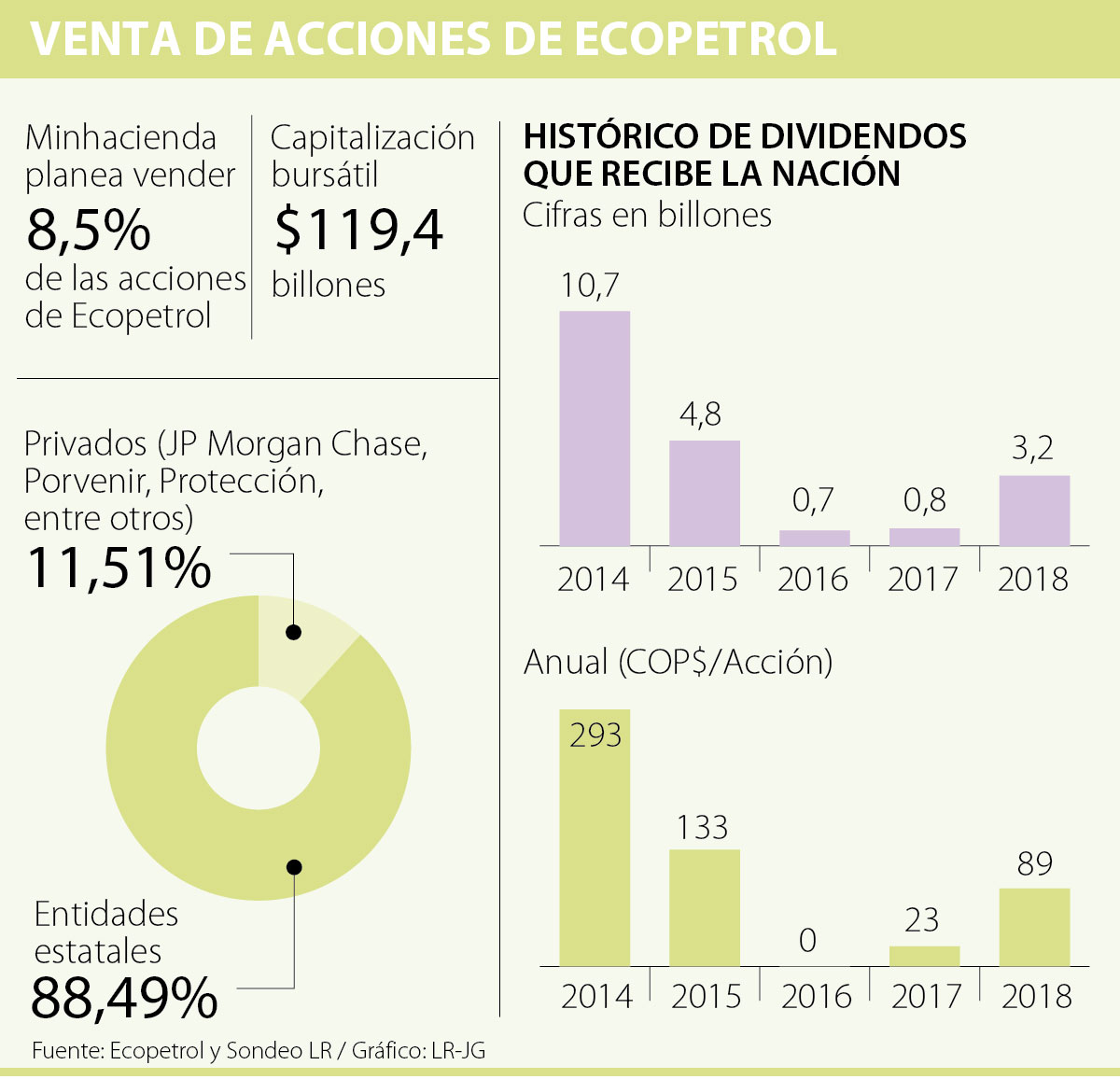 Tomando como referencia esta cifra, significa que ese 8,5% de participación dejó $274.922 millones en 2018. Por esto, esta participación tardaría 38 años en alcanzar los $10 billones que se obtendrían ya si se realiza la venta ahora.