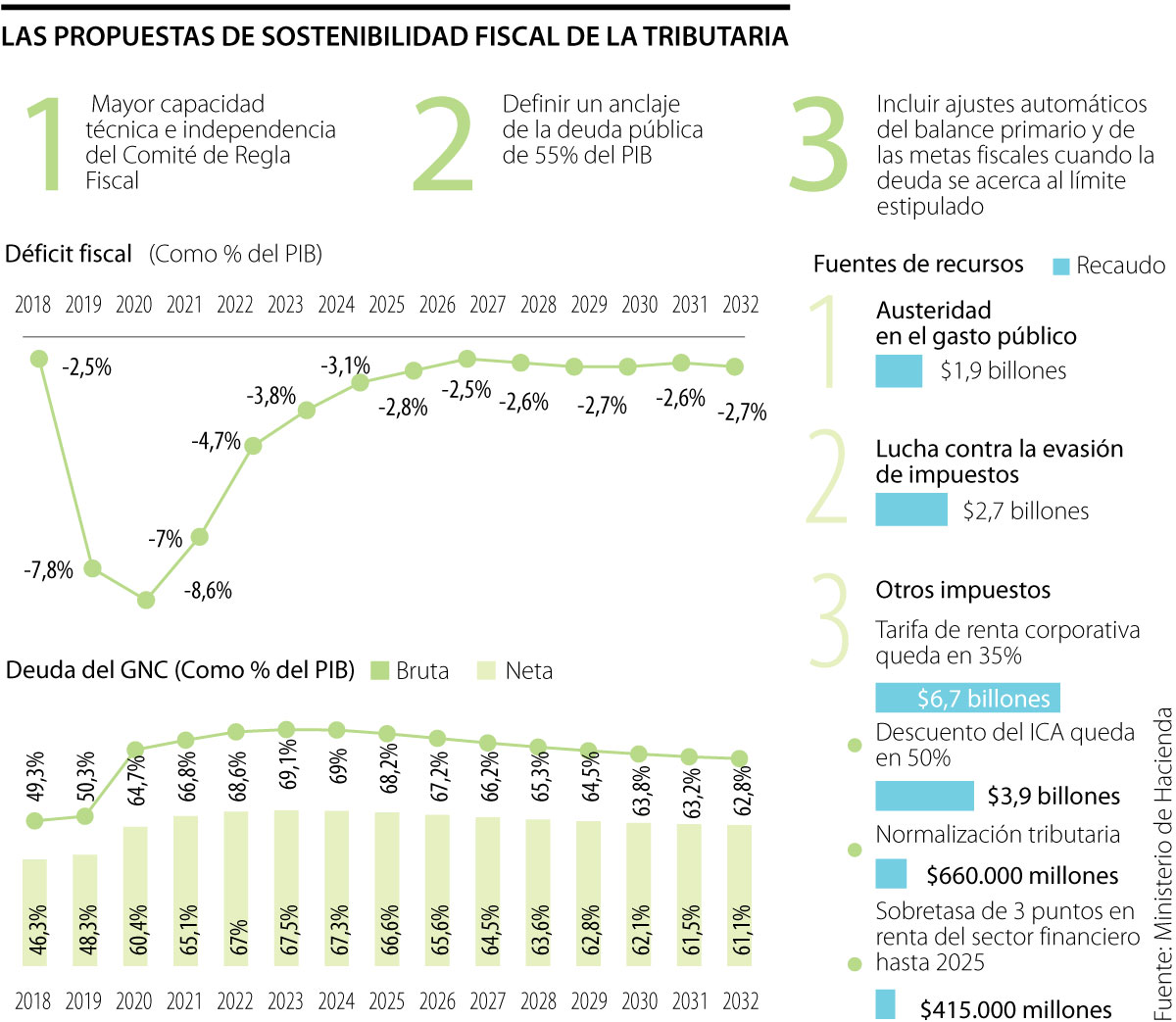 Además, según Renzo Merino, analista soberano para Colombia de Moody’s, lo que se propuso para la reforma está en línea con lo que planteó el Ministerio de Hacienda en el Marco Fiscal de Mediano Plazo (Mfmp) para empezar a disminuir la deuda.