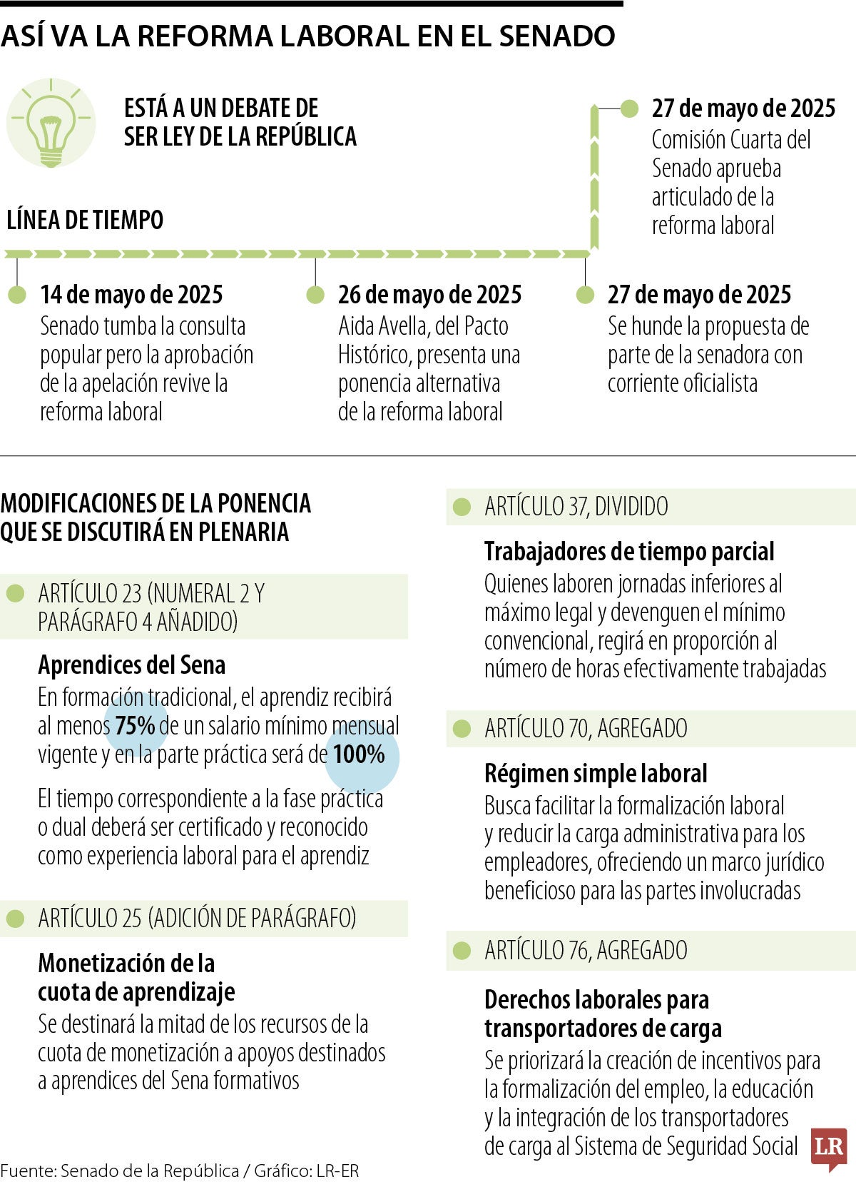 La reforma laboral continúa su curso en el Congreso y está a un debate de convertirse en ley de la República. Luego que el proyecto reviviera en el Senado el 14 de mayo, tras la aprobación de una proposición de apelación, ahora el texto arrancará su cuarto debate, que se hará en la Plenaria, pese a que restan dos semanas y media para finalizar el periodo legislativo. De hecho, ayer se presentó el texto definitivo que se discutirá.