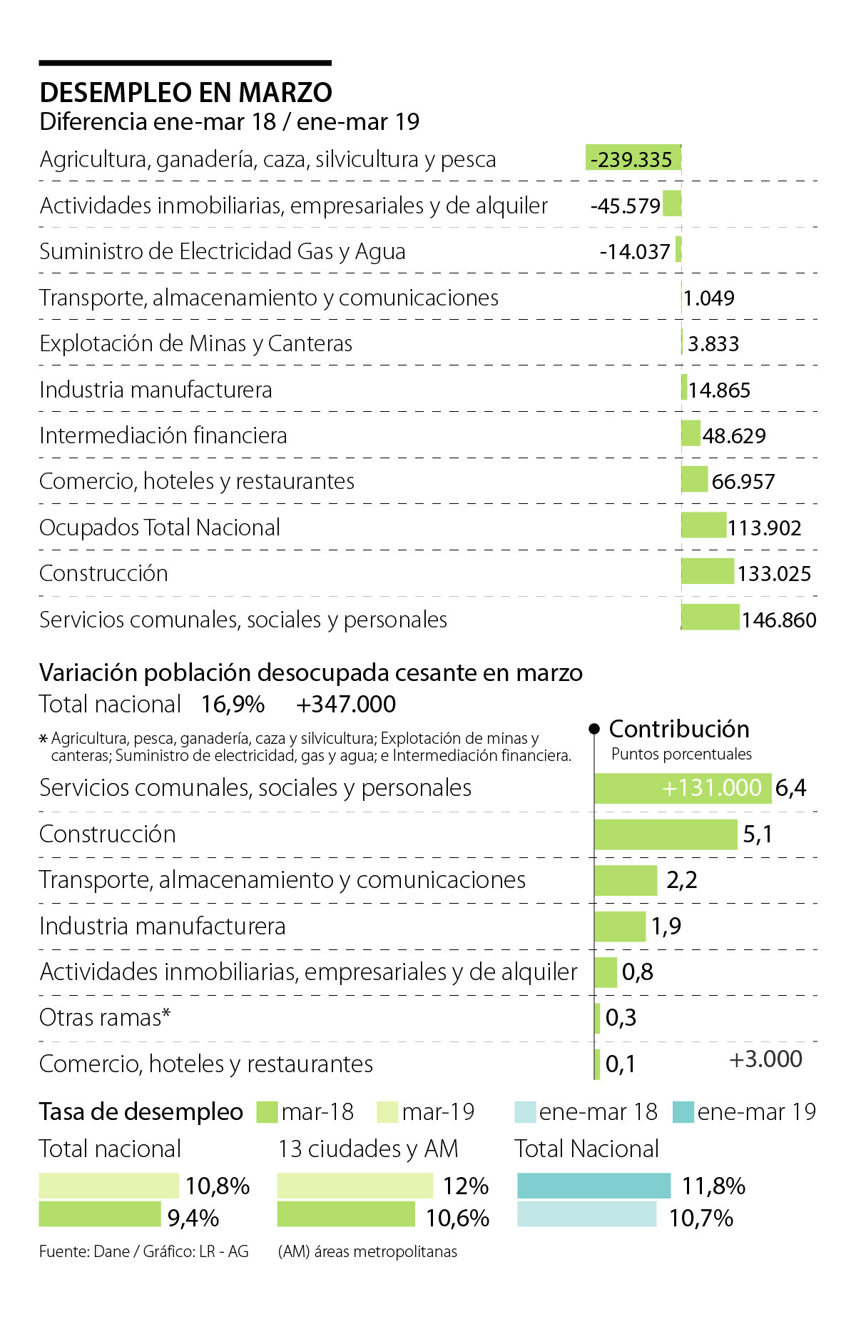 El Dane informó el martes que en marzo la tasa de desempleo subió a 10,8%, 1,4 puntos por encima del mismo mes de 2018. en este mes dejaron de trabajar 347.000 personas