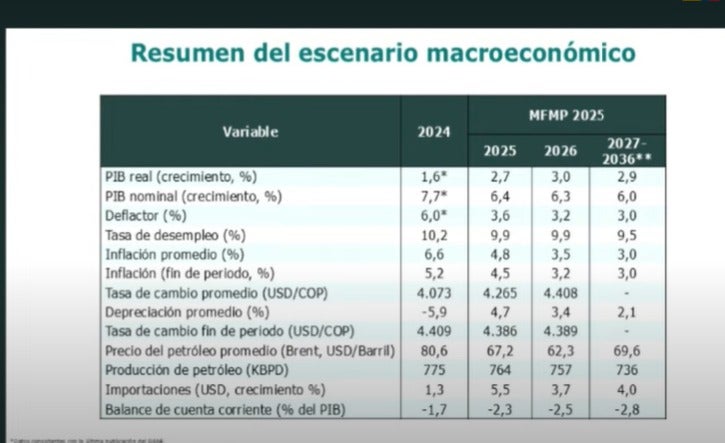 El Gobierno Nacional prevé una tasa de cambio de $4.265 para 2025, que repuntaría a $4.408 para 2026, según las cuentas presentadas en el Marco Fiscal de Mediano Plazo 2025