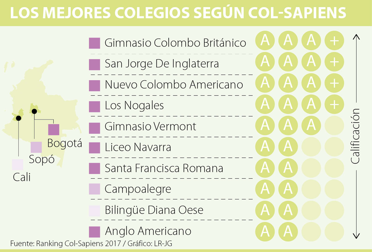 Después de un año de investigación, la firma consultora Sapiens Research Group (SRG) publicó la quinta versión del Ranking Col Sapiens en el que clasifica a los mejores colegios del país, un estudio que este año solo contó con 47 instituciones públicas.Después de un año de investigación, la firma consultora Sapiens Research Group (SRG) publicó la quinta versión del Ranking Col Sapiens en el que clasifica a los mejores colegios del país, un estudio que este año solo contó con 47 instituciones públicas.