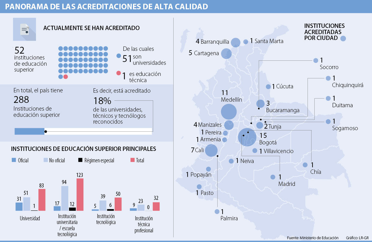 Esto quiere decir que apenas 18% de las 288 instituciones reconocidas por el Ministerio de Educación cuentan actualmente con la acreditación en alta calidad.