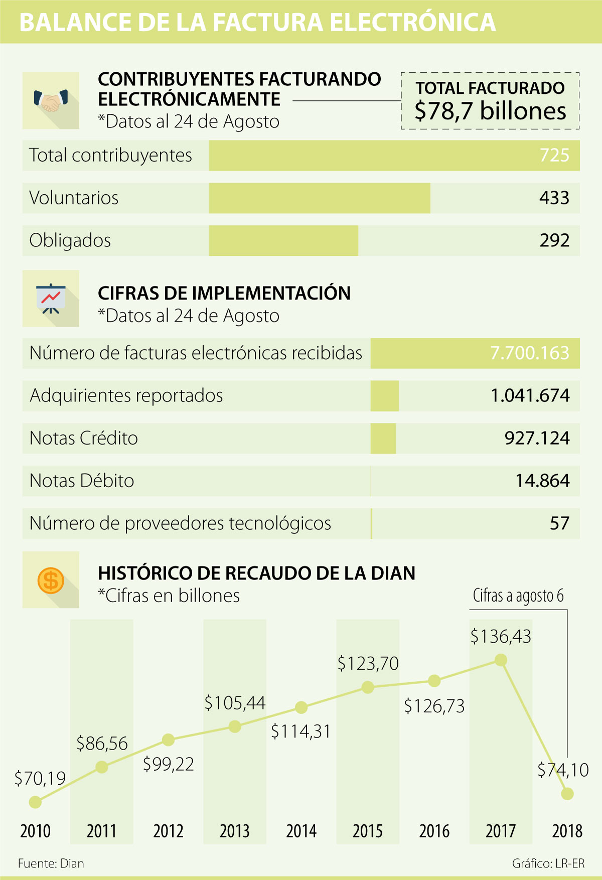 Dian reportó que a agosto 24 se habían facturado $78,7 billones