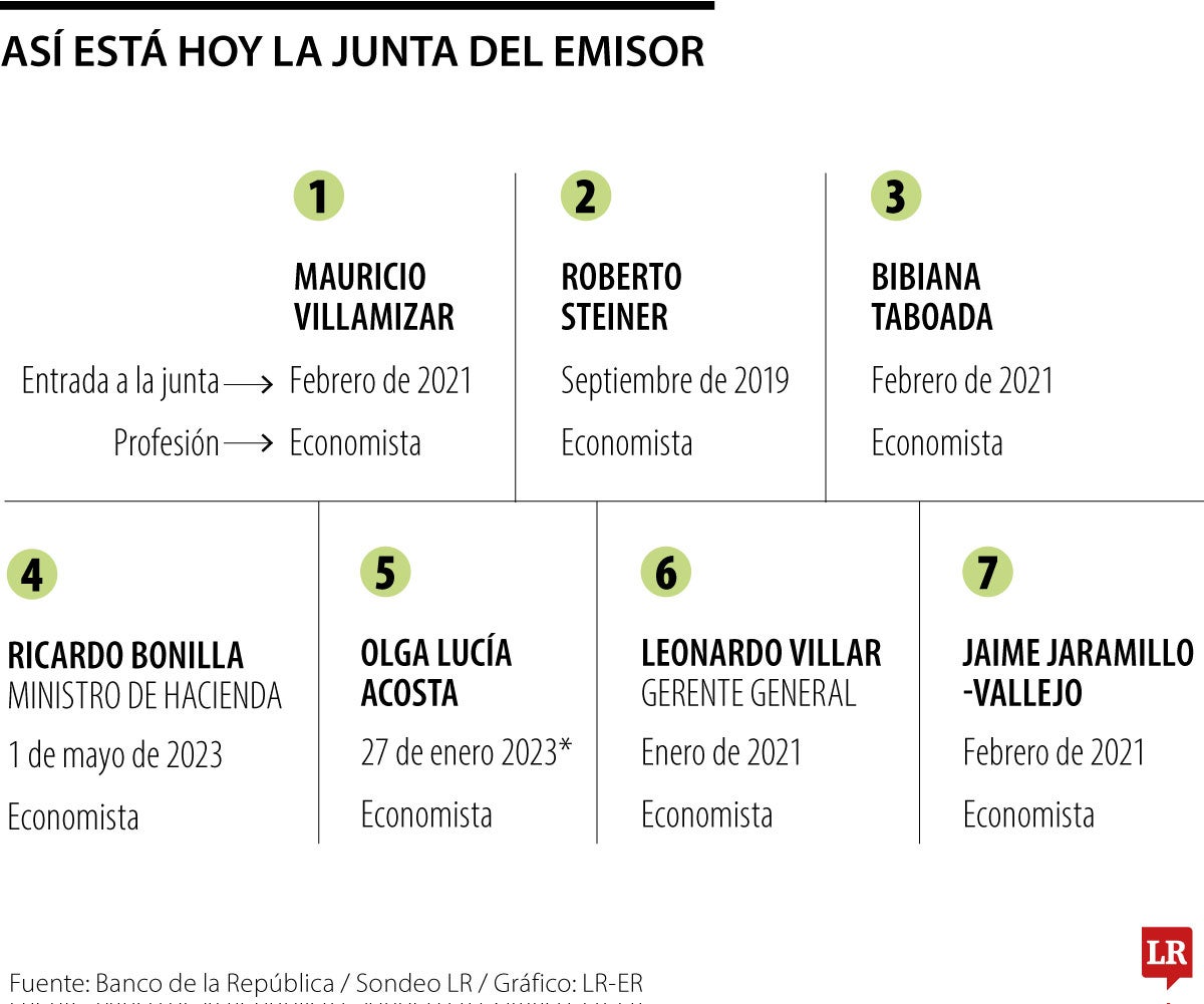 El primero de ellos es el economista Mauricio Villamizar, quien hizo su carrera en el Emisor e integra la Junta desde febrero de 2021. El cargo dura cuatro años y podría ser reelecto dos veces más, para un límite de 12 años.