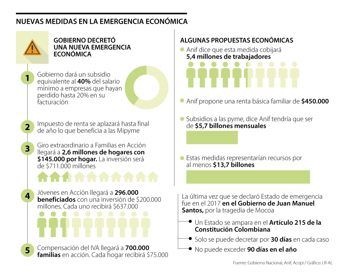 A la luz de una nueva ampliación de la cuarentena, el presidente de la República, Iván Duque, junto a su equipo económico, anunció durante su intervención diaria que se firmó un nuevo decreto para declarar una nueva emergencia económica. Con esta medida, el Gobierno emitirá alivios económicos para la pequeña y mediana empresa.