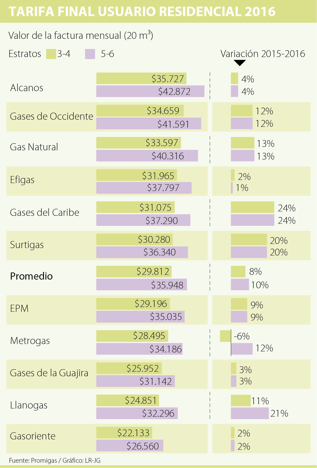 No obstante, según explicó Orlando Cabrales, presidente de la Asociación Colombiana de Gas Natural (Naturgas), el incremento real de las tarifas de gas es el de los estrato tres y cuatro puesto que “no tiene la tergiversación del estrato alto que paga más por la contribución y el estrato bajo que paga menos por el subsidio”. Es decir, el aumento real entre 2015 y 2016 sería de 8%.