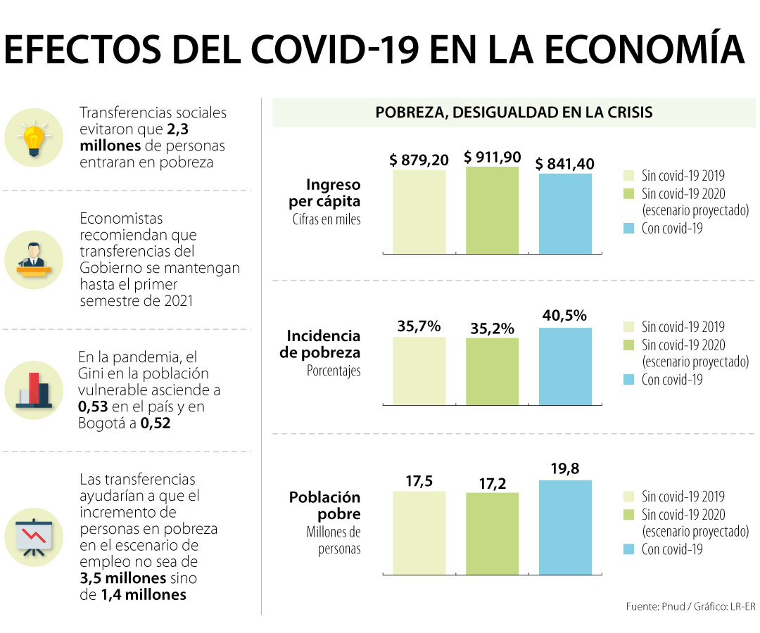 Ante este panorama, una de las conclusiones y recomendaciones que se enmarcan en el documento del Pnud es que las transferencias sociales para hogares pobres y vulnerables se mantengan por lo menos hasta la primera mitad de 2021.