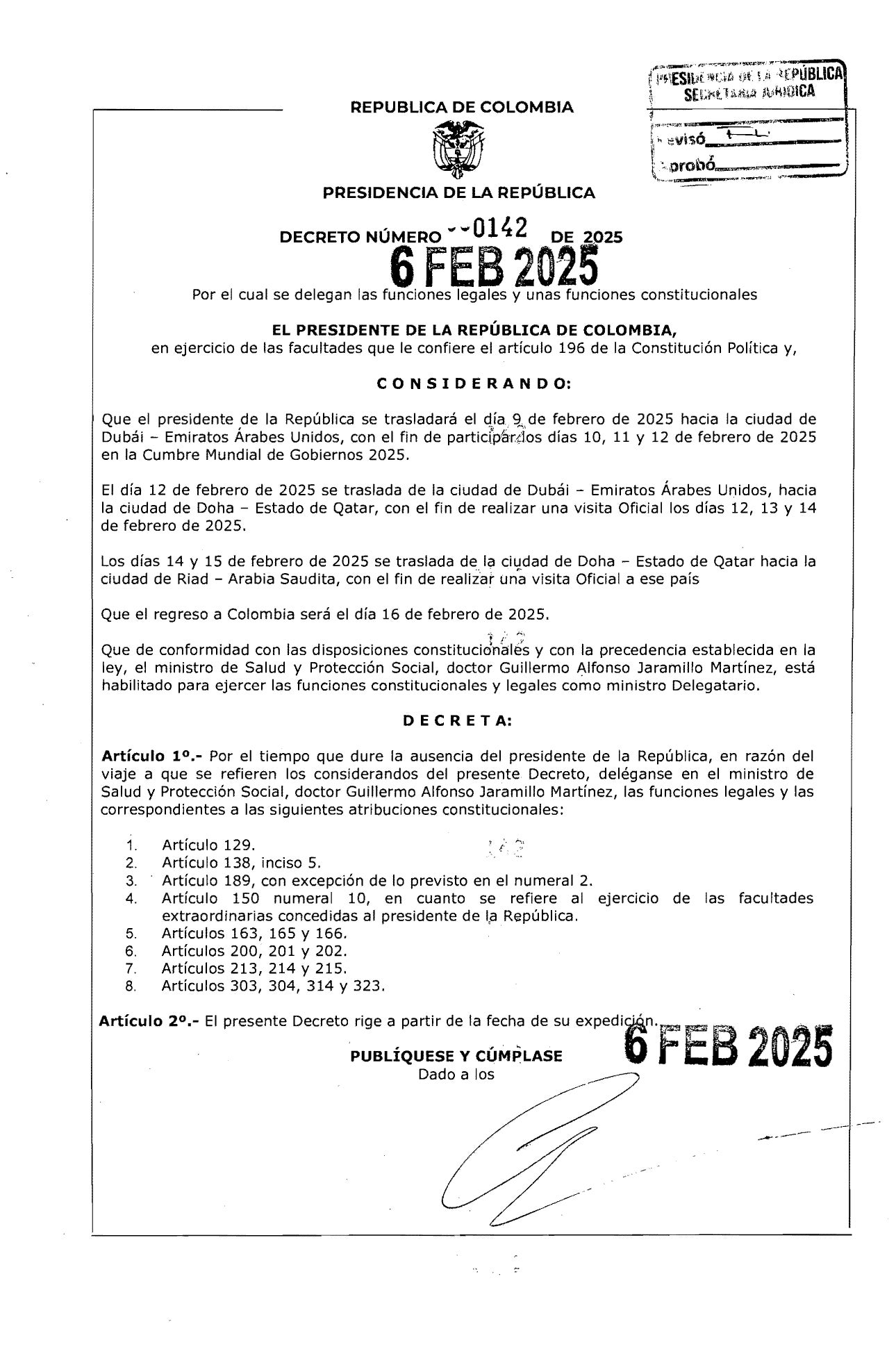 En el decreto se detalla que Jaramillo cuenta con las facultades para ejercer como ministro delegatorio.