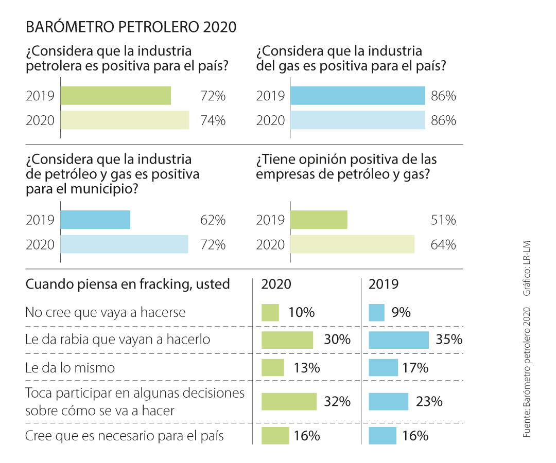 La encuesta muestra, entre otros, que si bien siete de cada 10 colombianos reconocen la importancia de la industria petrolera para la industria, e igual proporción cree que es necesaria para financiar los programas sociales y de inversión pública del Estado, solo 60% estaría de acuerdo en aumentar las operaciones del sector para contribuir a la reactivación económica del país.