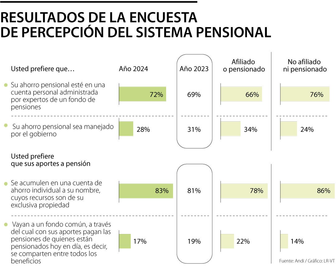 Otra de las discusiones en torno al proyecto es el umbral de cotizaciones, que recientemente logró reducirse a dos salarios y medio. En ese sentido, según la encuesta de la Andi, 49% prefiere “todo el ahorro para su pensión”.