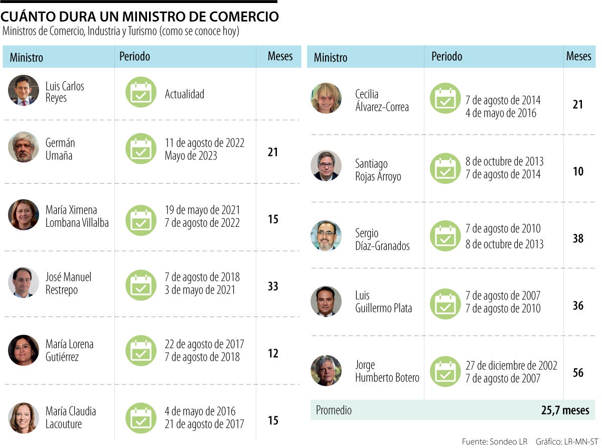 En total ha habido 10 ministros de Comercio desde 2002, y Luis Carlos Reyes será el undécimo en este cargo.