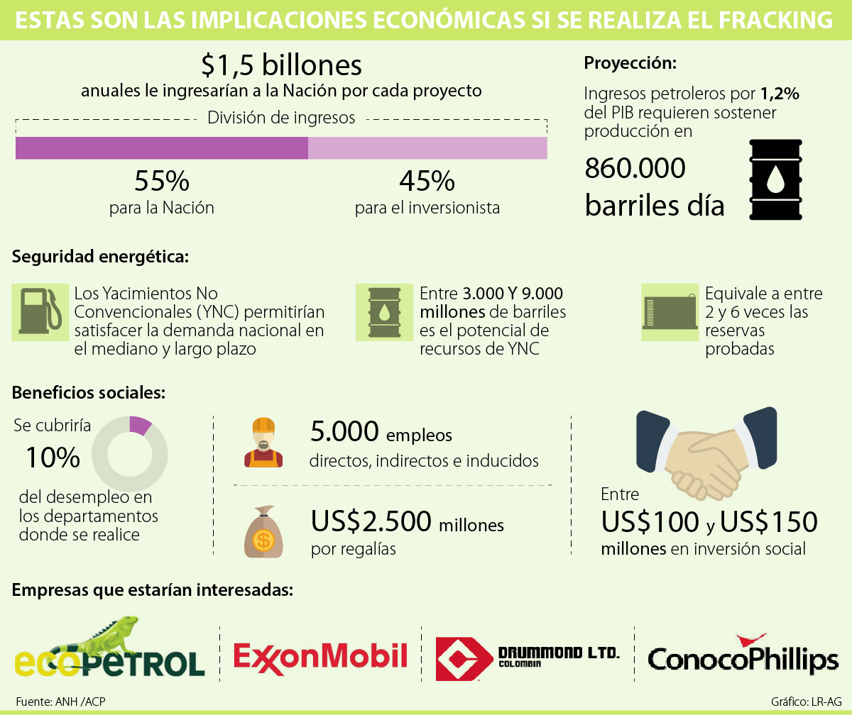 Así lo explicó Francisco Lloreda, presidente de la Asociación Colombiana de Petróleo (ACP), quien ratificó que, en general, hay tres grandes beneficios económicos en la exploración y producción de YNC mediante la fracturación hidráulica, o fracking.