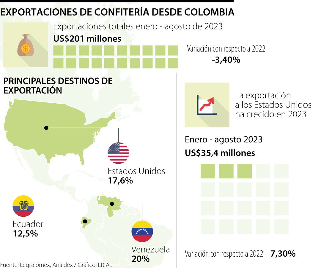 Díaz indicó que gran parte de las ventas de confitería colombiana están concentradas en la costa este de Estados Unidos, por lo cual considera que se deben explorar las oportunidades en la costa oeste.