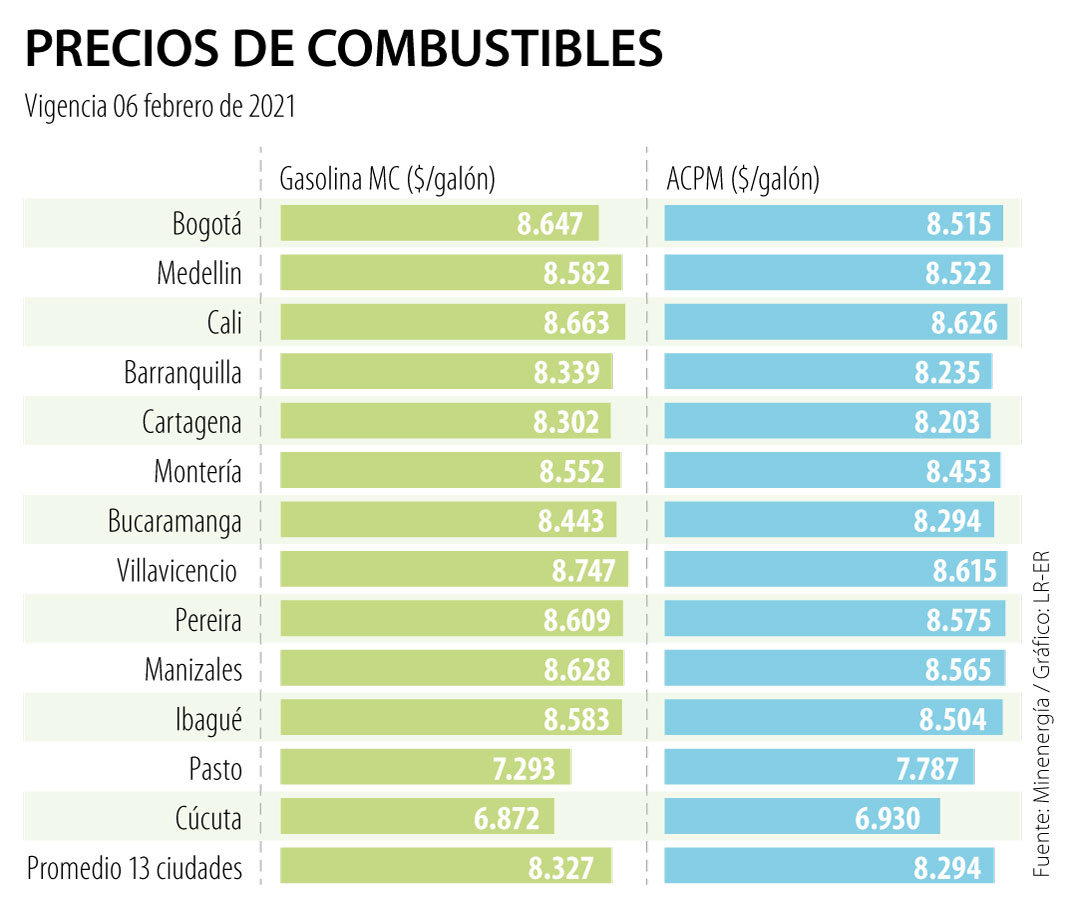 Según anunció el Ministerio de Minas y Energía, si bien los precios de la gasolina y el diésel tendrán un ajuste en las 13 principales ciudades de referencia de $198 y $145, respectivamente, para febrero, estas cifras siguen estando $951 y $773 por debajo de los índices alcanzados en el mismo periodo del año anterior.