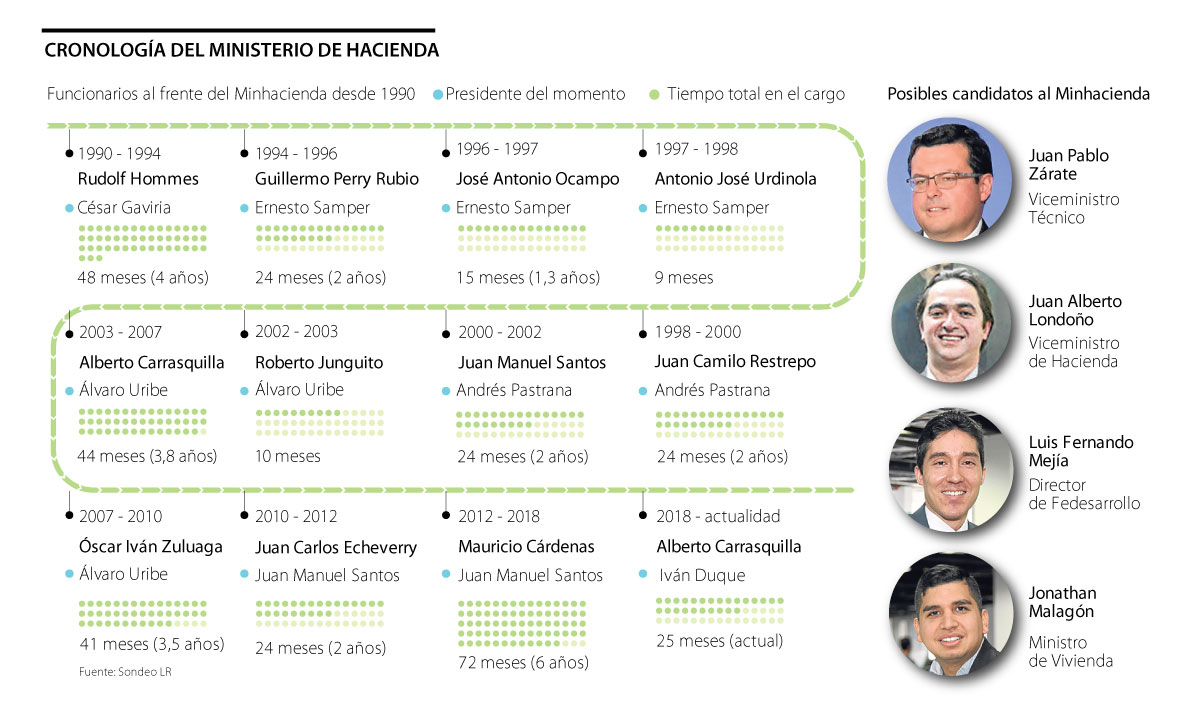 Otro punto clave es que mientras Carrasquilla es del ala de los conservadores y Malagón del Centro Democrático, Mejía es afín al liberalismo como ya se mencionó y Zárate al conservatismo, por lo que la pelea es qué partido se quedará con el Minhacienda y cómo sería la recomposición de las cuotas en esa cartera.