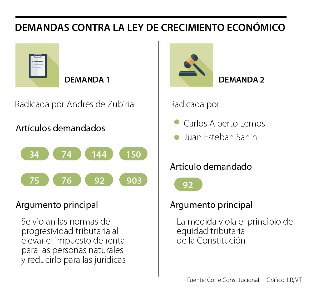 La otra demanda, radicada por el abogado Andrés de Zubiría, busca que se declaren inexequibles ocho artículos, al considerar que violan el principio de progresividad, es decir, que quienes tienen más dinero paguen más.