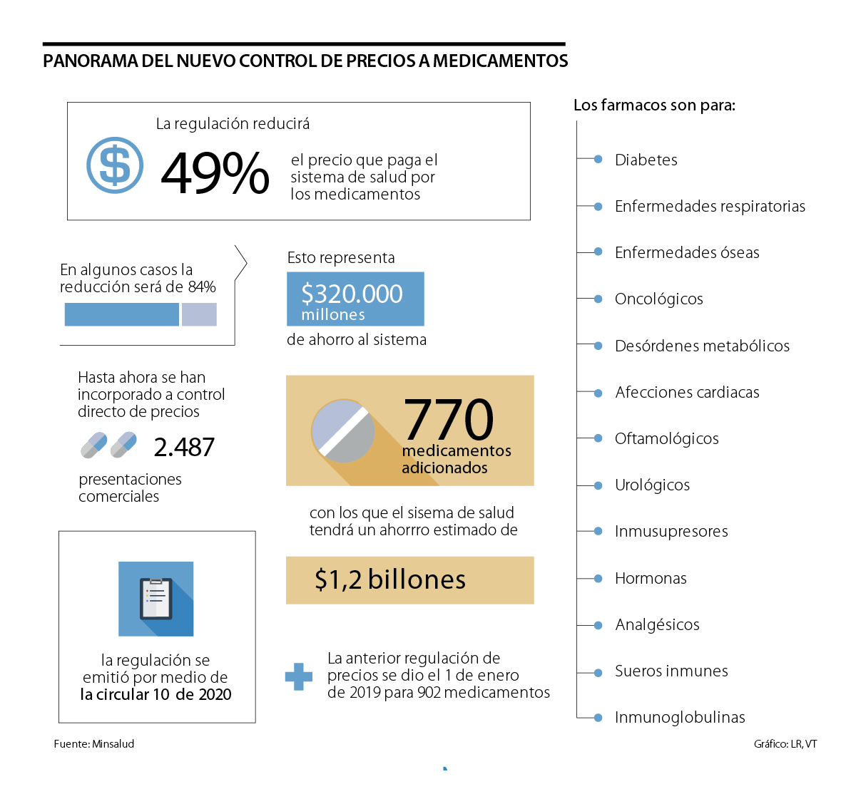 Así, el control de precios de estos 770 medicamentos le ahorrarían al sistema $320.000 millones. Además, al sumarse a los 902 que ya habían entrado en control de precios el pasado 1 de enero de 2019, el Ministerio de Salud estima que en total se ahorra $1,2 billones al sistema de salud para el 2020. Al momento, según lo informado por la cartera, van 2.487 presentaciones comerciales de medicamentos que se han incorporado al control directo de precios.
