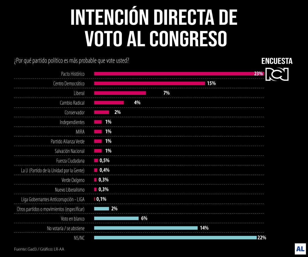 La gran encuesta, realizada por RCN, Alerta, La FM y La República, muestra que el Centro Democrático lograría 15% de la participación