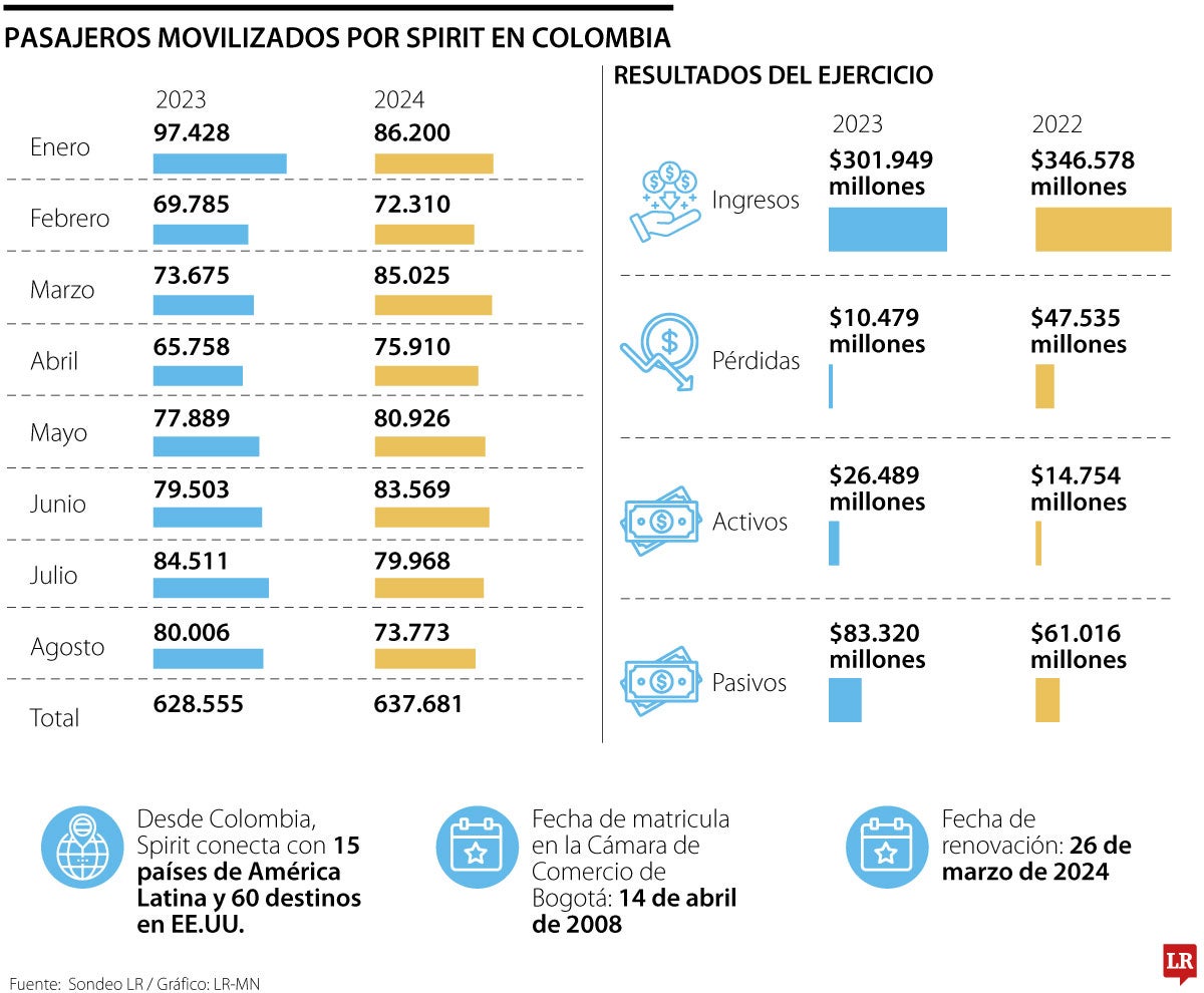 La participación de Spirit en el mercado nacional ha crecido en línea con una población que cada vez demanda más viajes. Según las estadísticas de la Aeronáutica Civil, hace 10 años esta aerolínea movió a 191.050 pasajeros entre enero y agosto. Y para el mismo lapso de 2024, los usuarios transportados ascendieron a 637.681, para un crecimiento de 234% en una sola década.