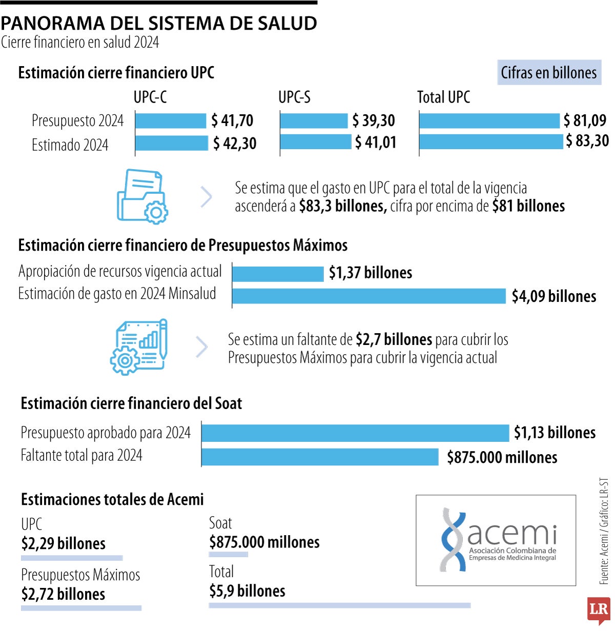La Asociación Colombiana de Empresas de Medicina Integral, Acemi, lanzó un balance sobre el sector salud colombiano y aseguró que para final de año se espera un déficit de $5,9 billones de UPC, Presupuestos Máximos, y Soat.