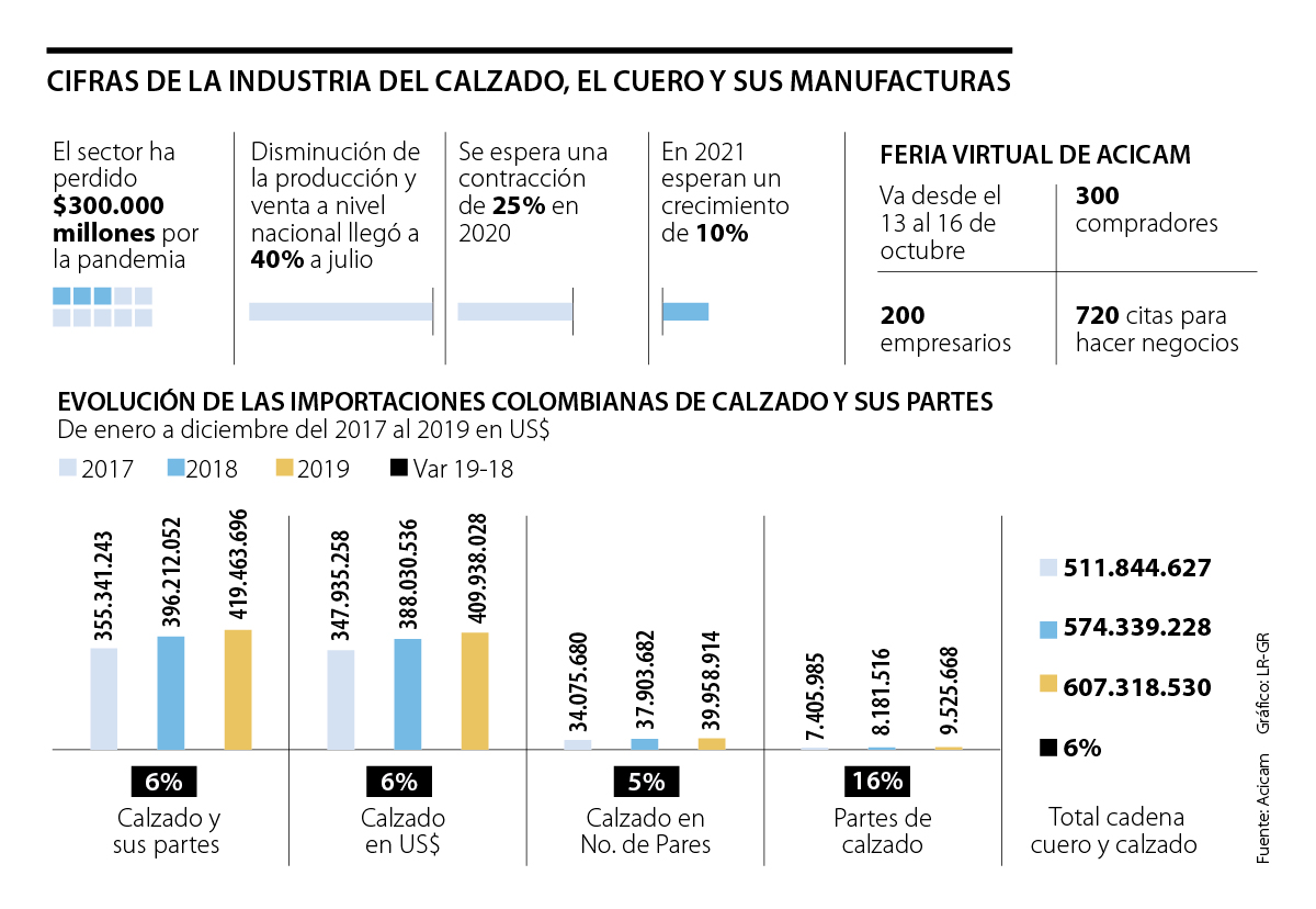 La reactivación económica ha puesto diversos retos a las compañías que están buscando cómo generar ingresos para no presentar una contracción tan grande a final de año. La Asociación Colombiana de Industriales del Calzado, Acicam, realizó la primera feria virtual que culminará mañana con 720 citas para realizar negocios y aliviar las millonarias pérdidas por el covid-19.