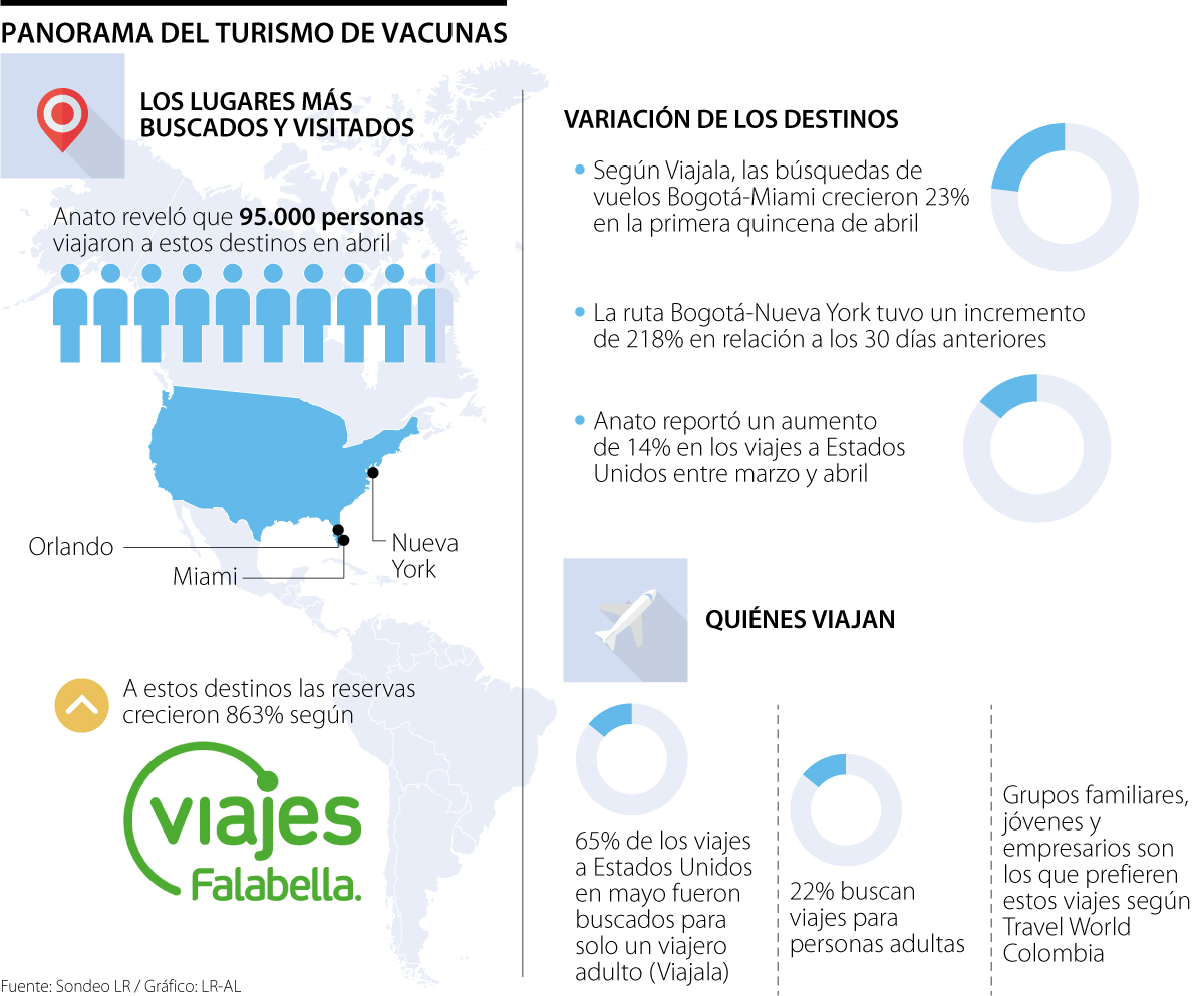 Esta es una tendencia que también ha podido notar la agencia Travel World Colombia, según la cual estos destinos se repiten en la tendencia. De acuerdo con su gerente, Ginna Cárdenas, esto se debe a que no hay mayores restricciones, se puede acceder sin cita a la vacuna e incluso elegir la que se quieren aplicar.