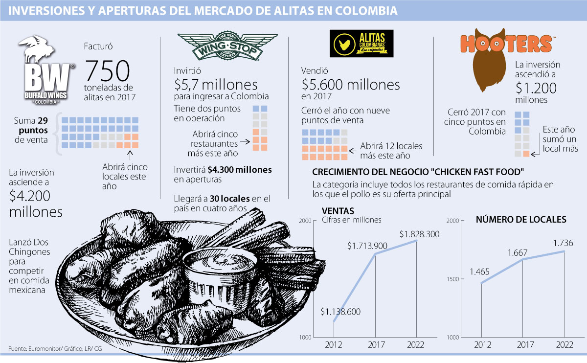 Y si bien el mercado parece relativamente nuevo, en realidad lo inauguraron Wingz y Hooters hace ya más de una década, en 2007. En 2009 llegó la indestronable Buffalo Wings. En 2014 se materializó la idea de Alitas Colombianas y el año pasado aterrizó Wingstop, razón por la que este año será más bien de maduración.