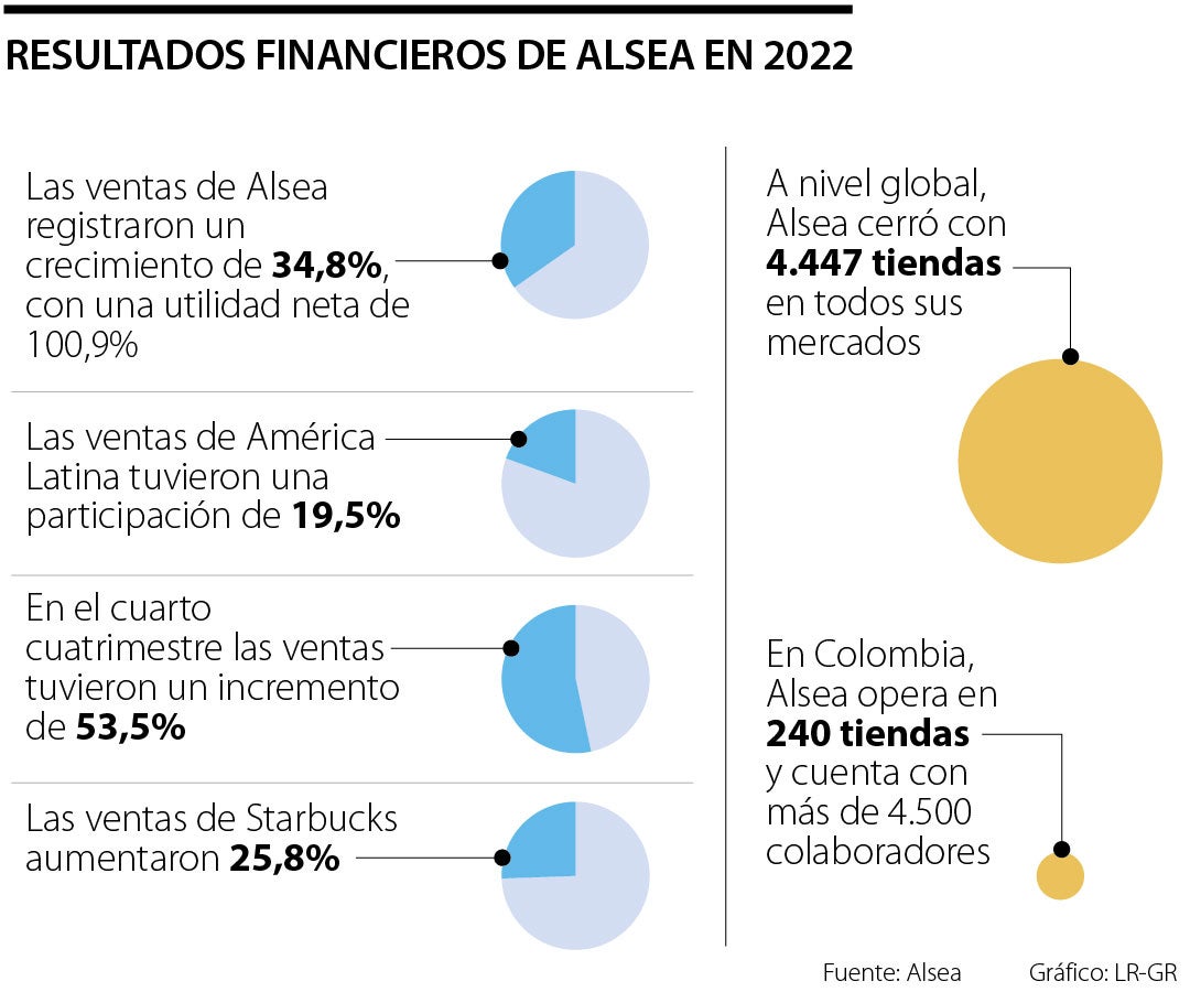 Alsea, el operador de restaurantes Domino’s, Starbucks y Archies, alcanzó récord de ventas en 2022 en el país con un crecimiento de 34,8% y una utilidad neta de 100,9%. Las ventas de América Latina tuvieron una participación de 19,5%.
