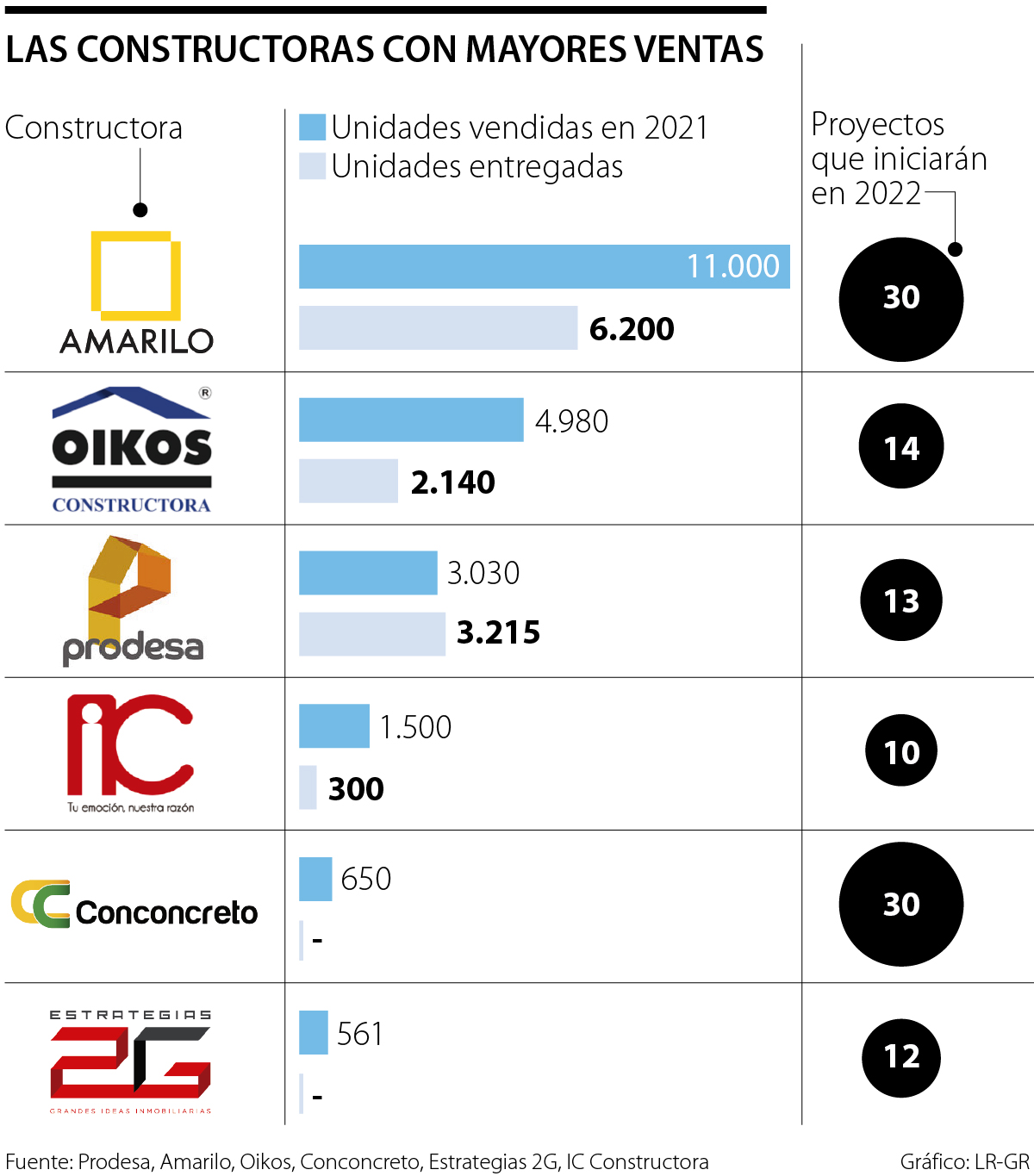 Seis constructoras vendieron durante 2021 un 10,3% del total en el país a cierre de noviembre, según cifras de Camacol