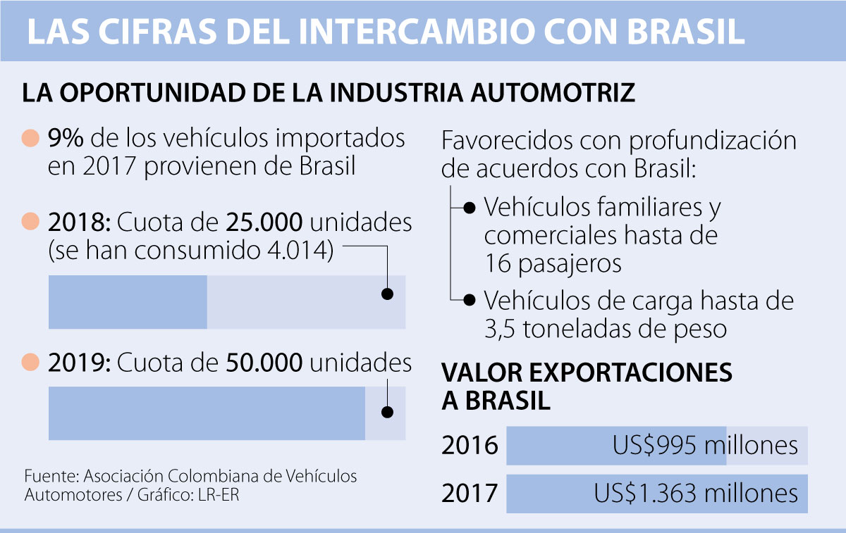 Según el gremio, este acuerdo favorece las exportaciones de vehículos familiares y comerciales con capacidad hasta de 16 pasajeros y vehículos de carga que pesen hasta 3,5 toneladas. El nuevo acuerdo estableció una cuota de 12.000 unidades para 2017, de las cuales se alcanzaron a usar 1.069 cupos libres de aranceles entre el 20 y el 31 de diciembre de 2017. Para este año se estableció una cuota de 25.000 unidades, de las cuales a la fecha ya se han registrado 4.014 unidades. Finalmente, a partir de 2019 la cuota será de 50.000 unidades.
