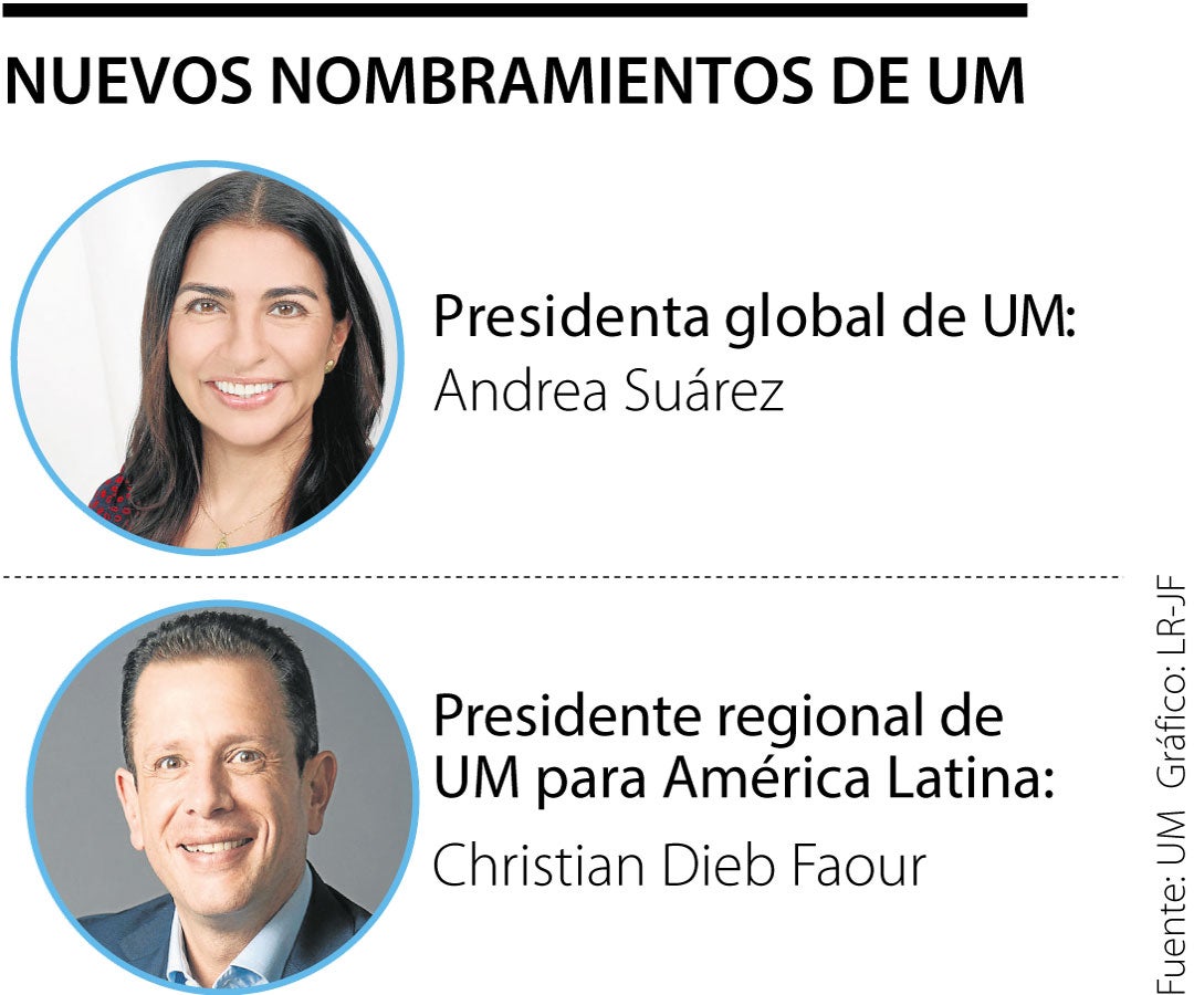Andrea Suárez desempeñará el papel como presidente global de la marca, mientras que Christian Dieb Faour será presidente regional de UM para América Latina, quien también continuará ejerciendo el cargo de CEO de IPG Mediabrands para la región Andina conformada por Colombia, Ecuador y Perú.