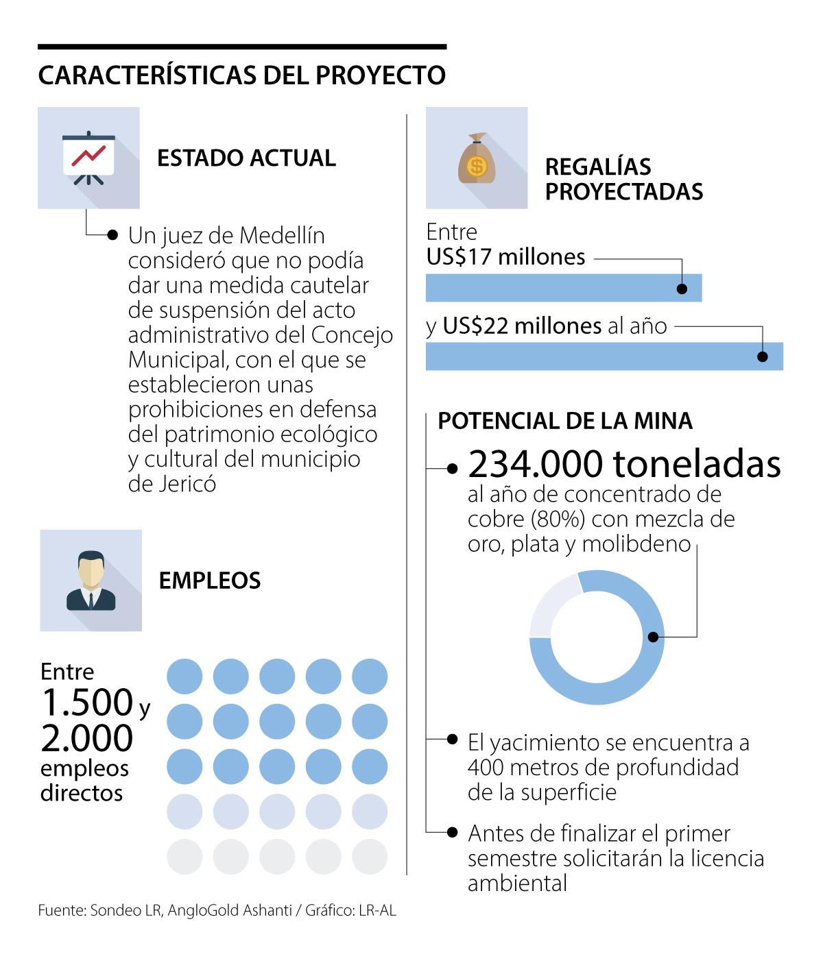 Un juzgado de Medellín no aceptó la solicitud de la empresa Anglogold de suspender provisionalmente la prohibición que hay en el municipio de Jericó (Antioquia) para adelantar actividades de minería, lo que significa otro golpe para el proyecto en Quebradona que dirige dicha compañía.