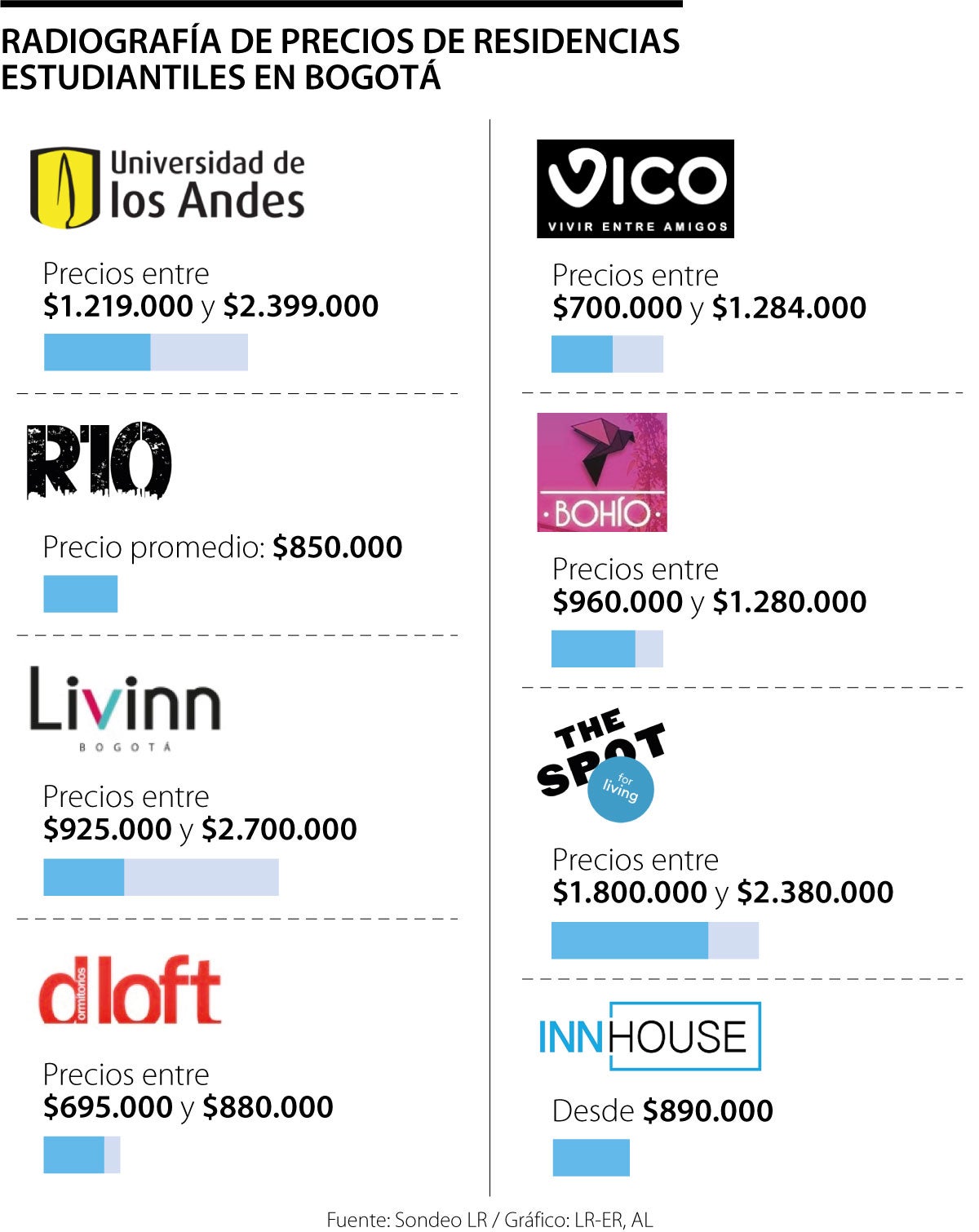 LR consultó a estas empresas y confirmó que un estudiante paga $1,29 millones en promedio por el alquiler de una residencia estudiantil en Bogotá, que a diferencia de una casa normal, incluye una serie de servicios integrales diseñados a la medida de lo que necesita un joven que recién sale de su hogar. En este precio está incluido el mobiliario del apartamento, junto con los servicios básicos de agua, energía, internet y hasta lavandería.
