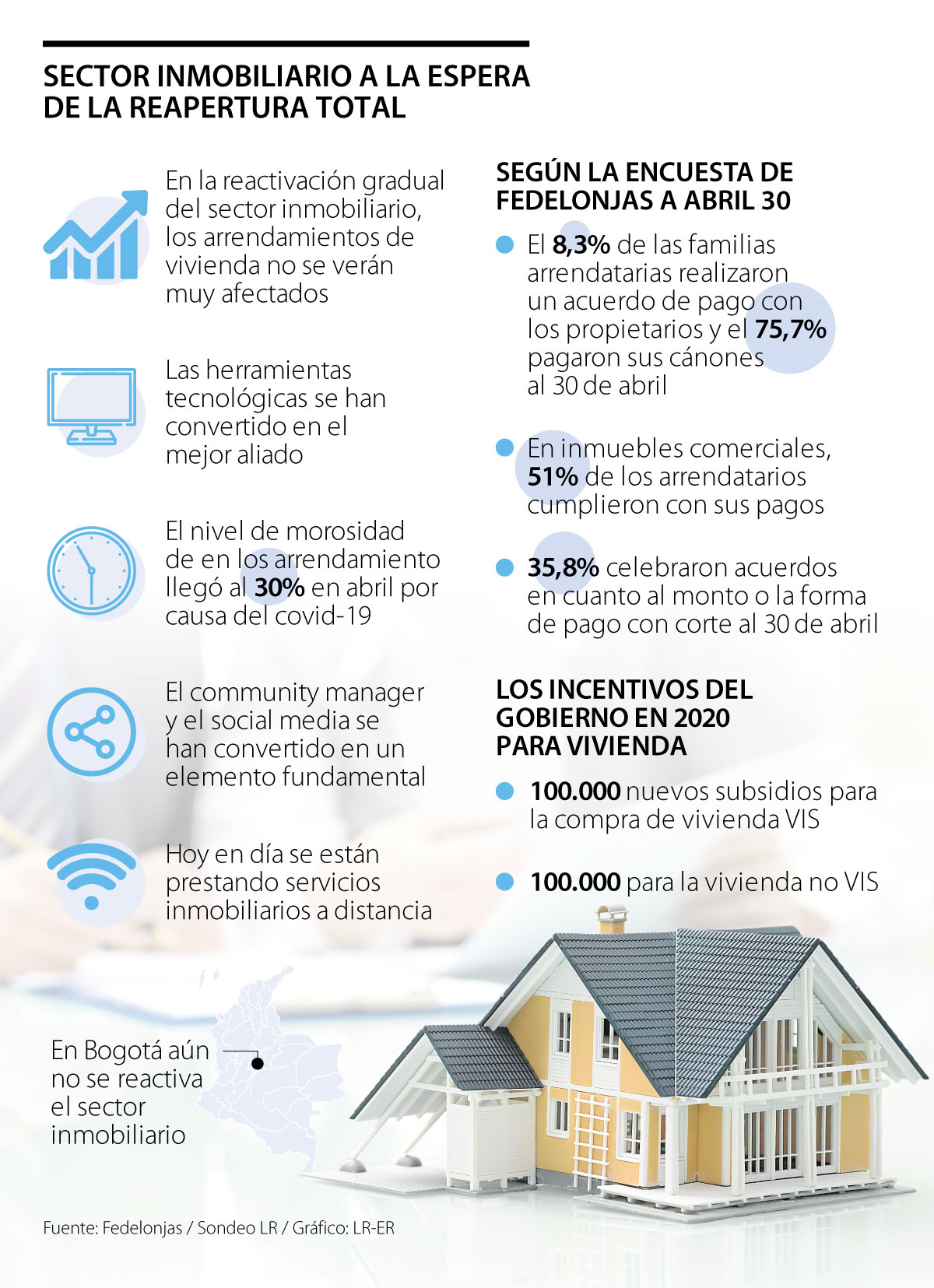 Además, la entidad destaca que en la reactivación gradual del sector inmobiliario, los arrendamientos de vivienda no se verán muy afectados, dado el represamiento del mercado de casi tres meses y “la movilidad que existirá por buscar inmuebles de un costo distinto, sin desconocer las dificultades de la afectación del poder adquisitivo de los arrendatarios”, señaló.