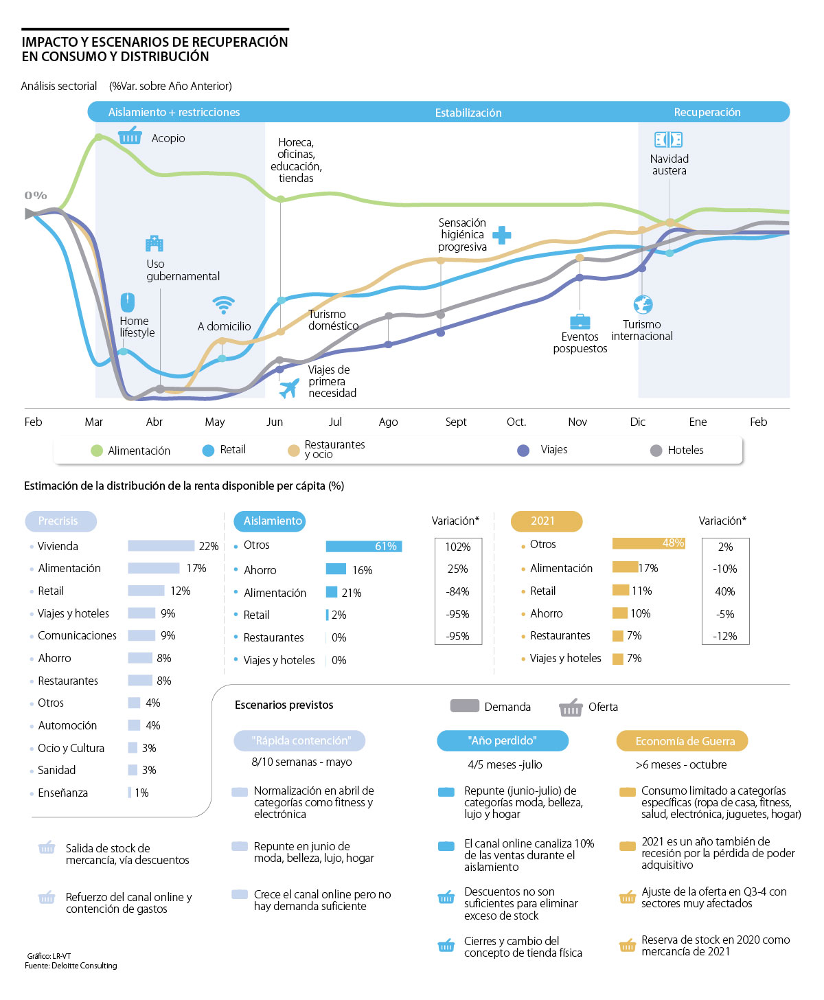 El coronavirus ha marcado una nueva pauta en la vida de las personas, las rutinas, los trabajos e, incluso, las decisiones de consumo están mediadas por la incertidumbre de la pandemia. La consultora Deloitte publicó un estudio sobre el impacto y escenarios de recuperación en el consumo y distribución durante el próximo año.