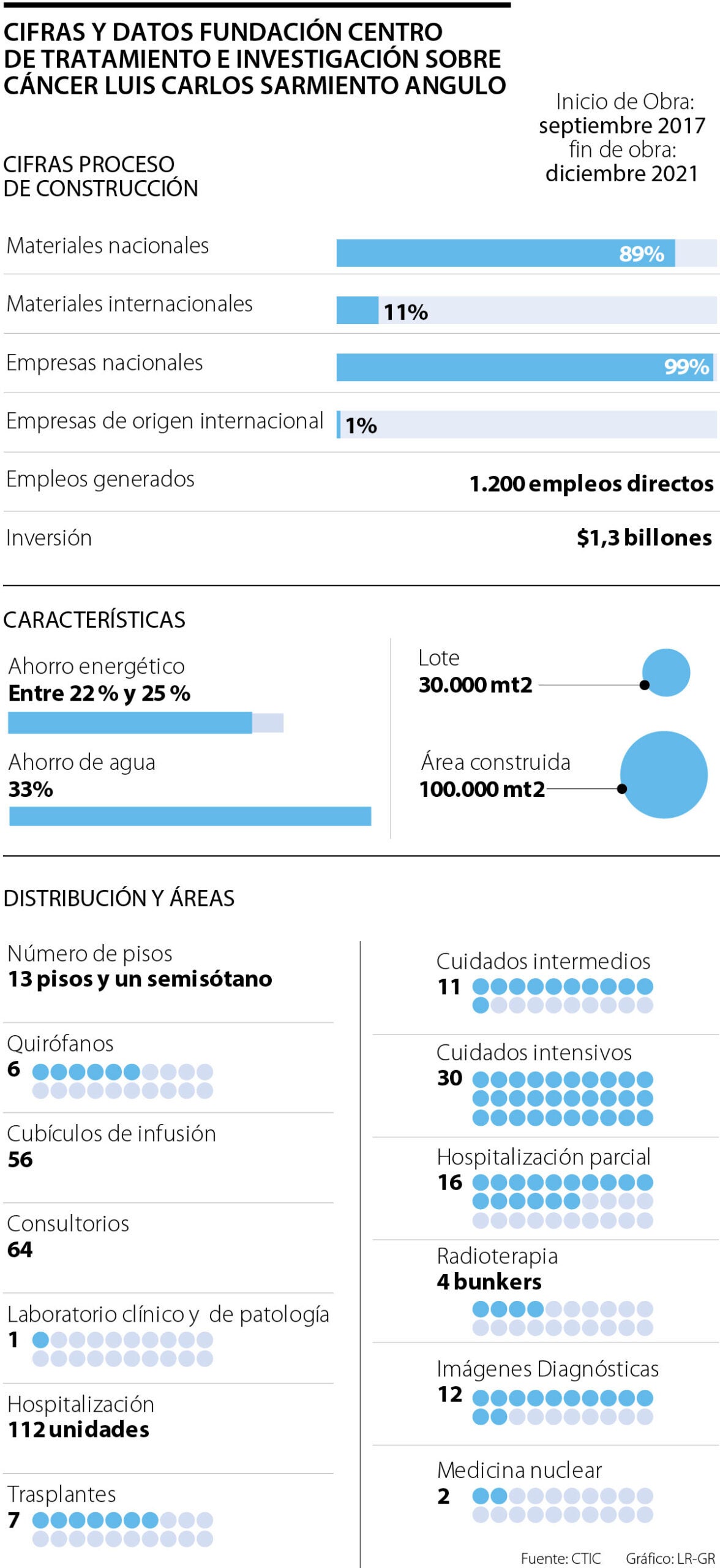 La capacidad de atención médica de alta complejidad de Colombia recibirá hoy un impulso, cuando abra sus puertas el nuevo Centro de Tratamiento e Investigación sobre Cáncer Luis Carlos Sarmiento Angulo (Ctic), gracias a una inversión de $1,3 billones. Entre otras cosas sumará más de 176 nuevas habitaciones, iluminadas con luz natural.