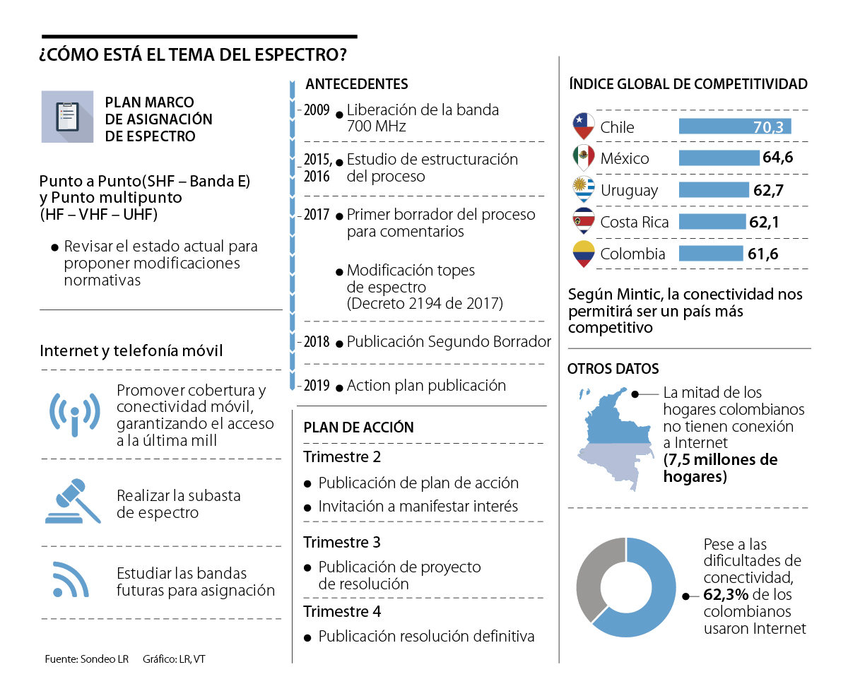 Para llevar a cabo dicho propósito, el Ministerio de Tecnologías de la Información y las Comunicaciones de Colombia (MinTic) publicó un plan de acción, en el que se contempla que antes de que se termine el año, se dará a conocer la resolución definitiva y se realizará la subasta.