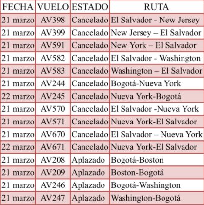 Dentro de su anunció también se aclaró que los viajeros con reserva para desplazarse desde y hacia Nueva York, New Jersey, Boston y Washington hoy 21 de marzo, podrán hacer cambios de fecha de viaje, sin pago de penalidad para volar hasta un mes después de la fecha de afectación.
